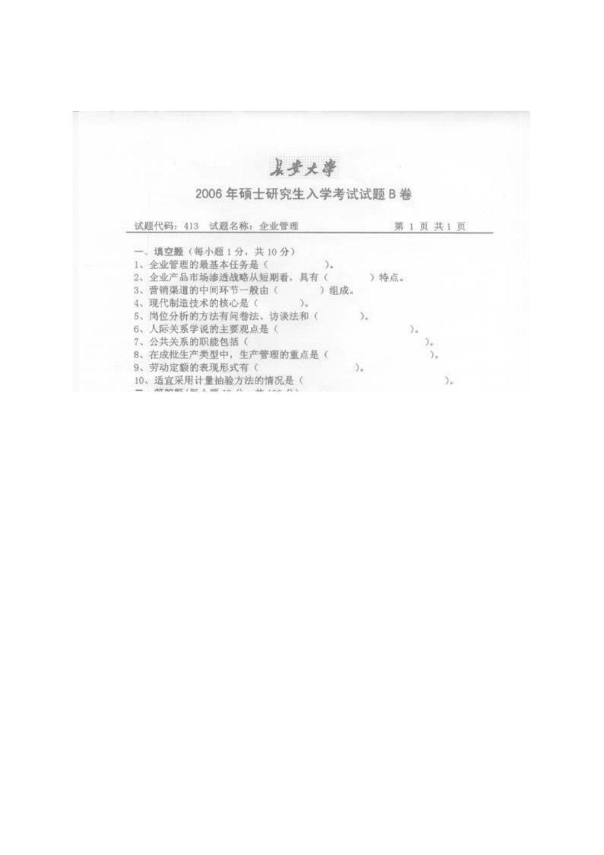 长安大学企业管理2006年真题