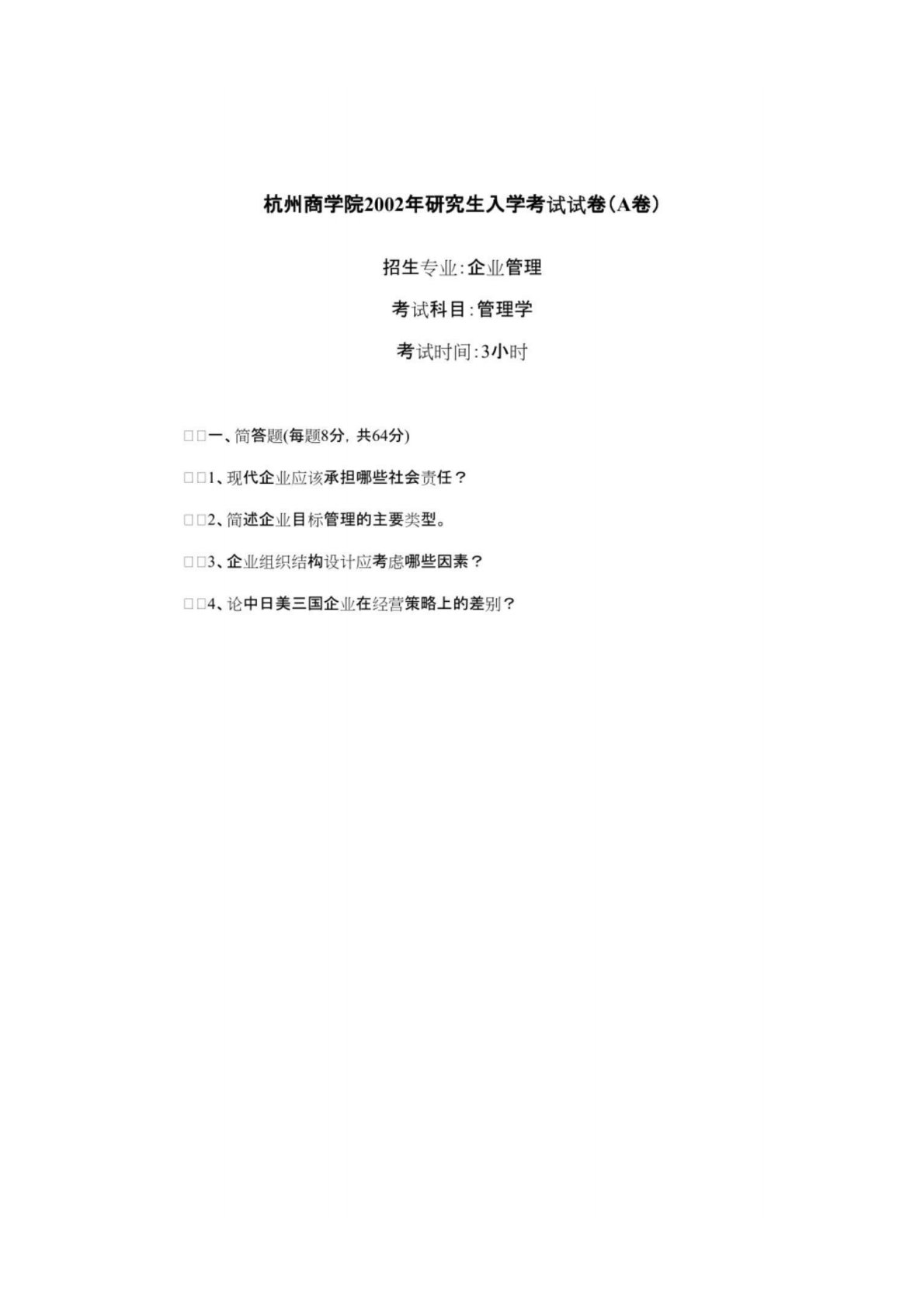 浙江工商大学832管理学原理2002年真题