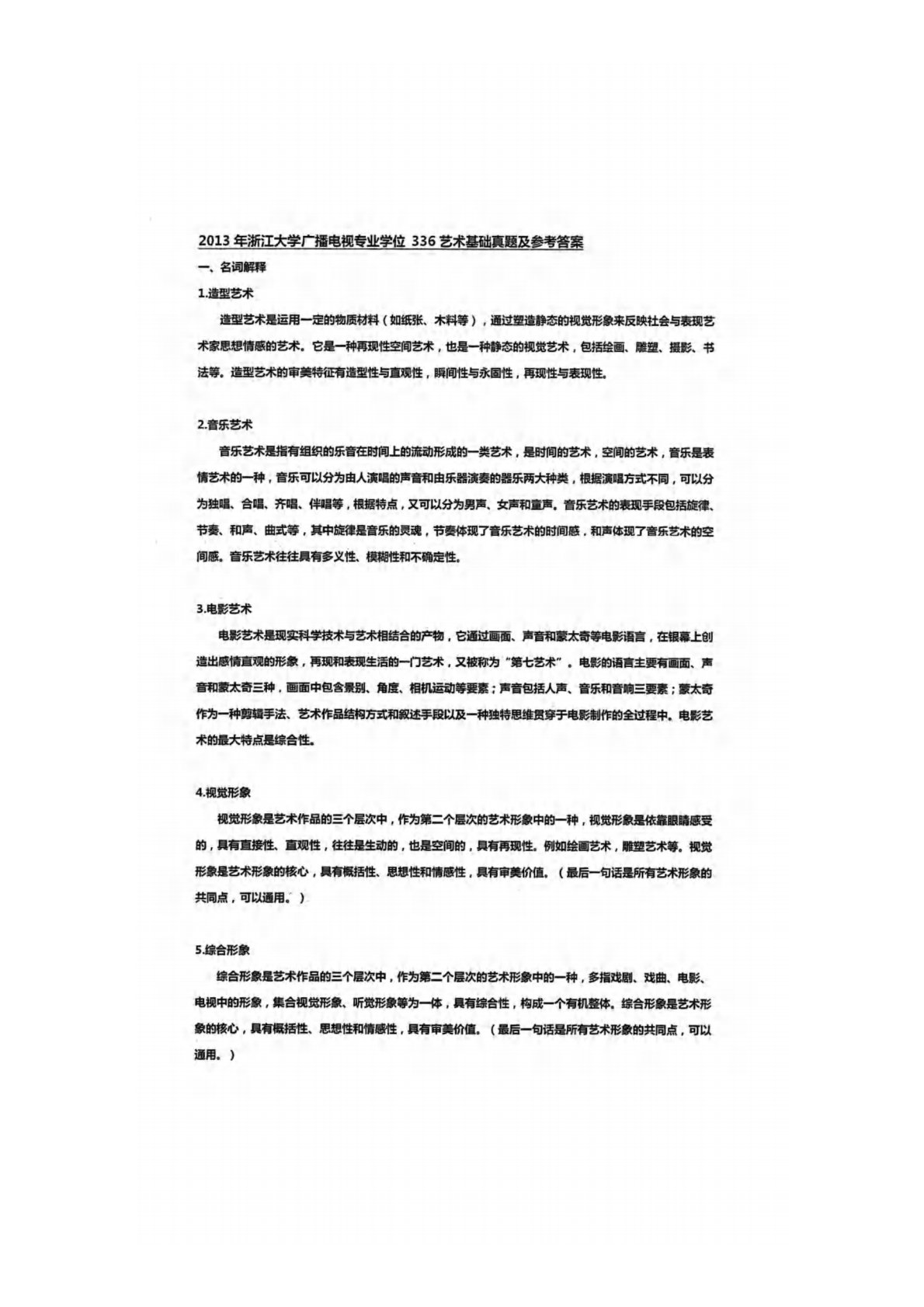 浙江大学336艺术基础2013年真题答案