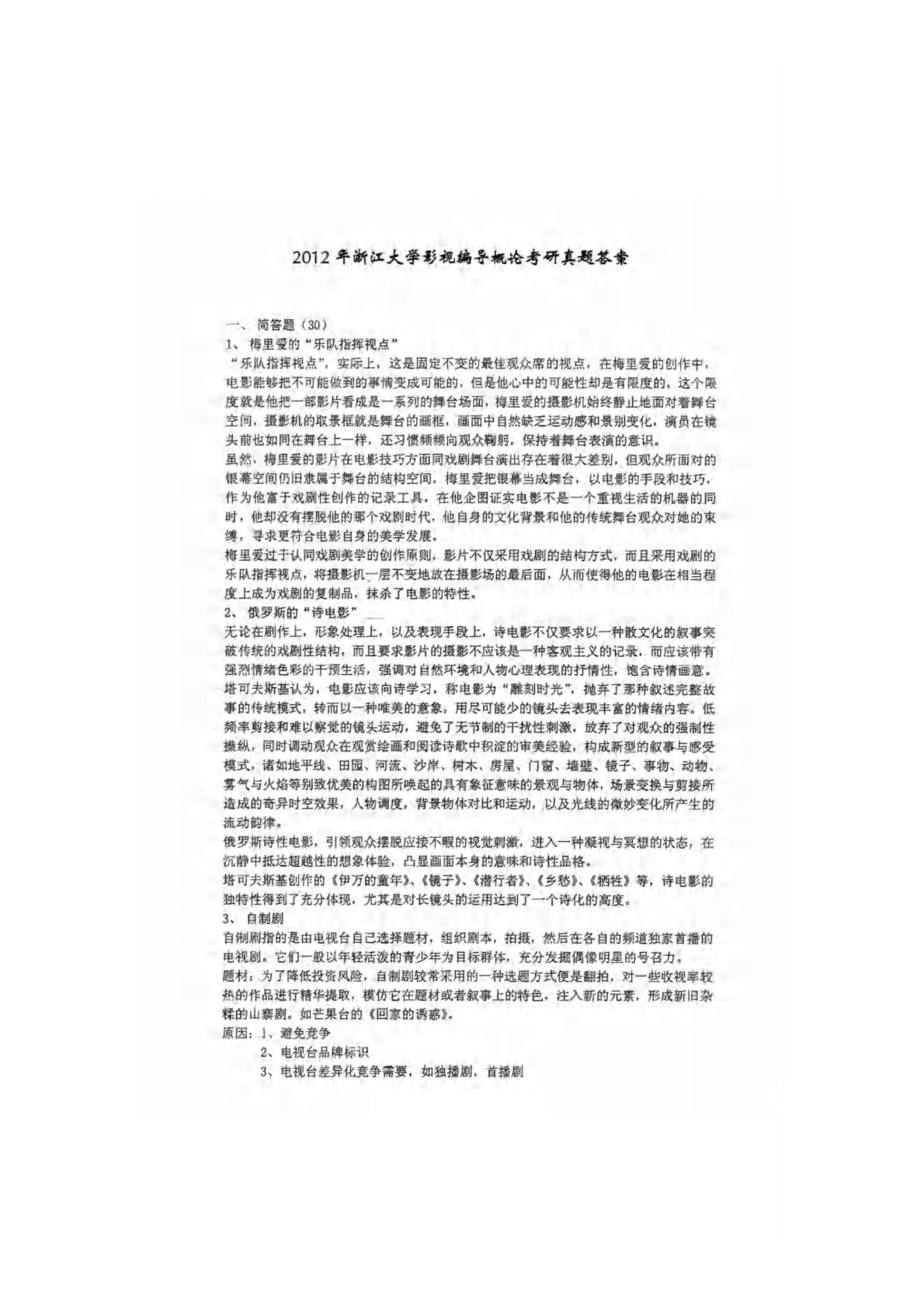 浙江大学876影视编导概论2012年真题答案