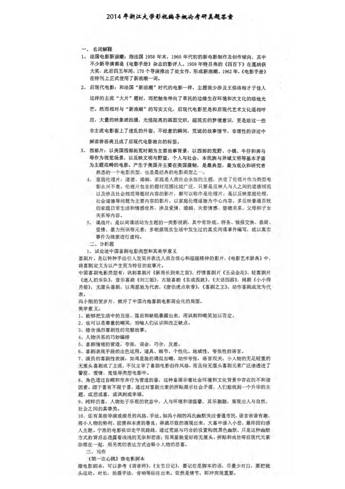 浙江大学876影视编导概论2014年真题答案