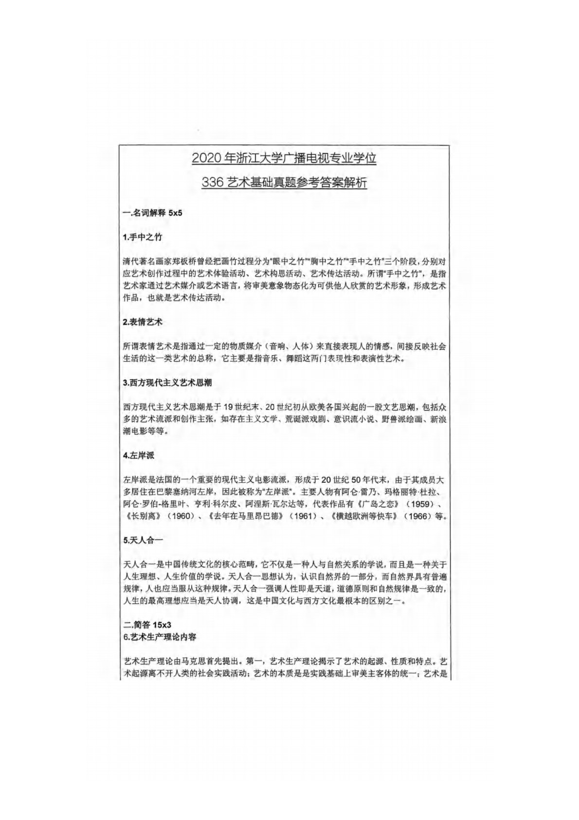 浙江大学336艺术基础2020年真题答案