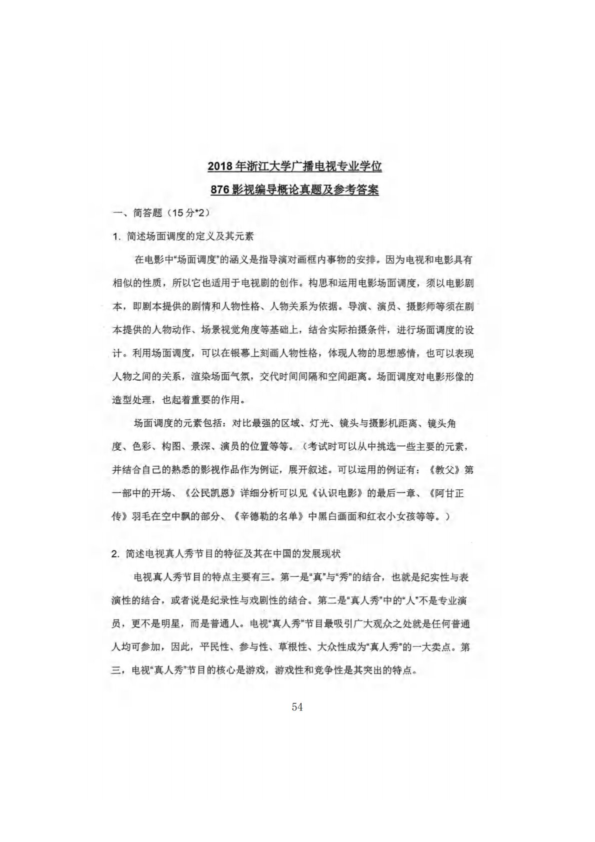 浙江大学876影视编导概论2018年真题答案