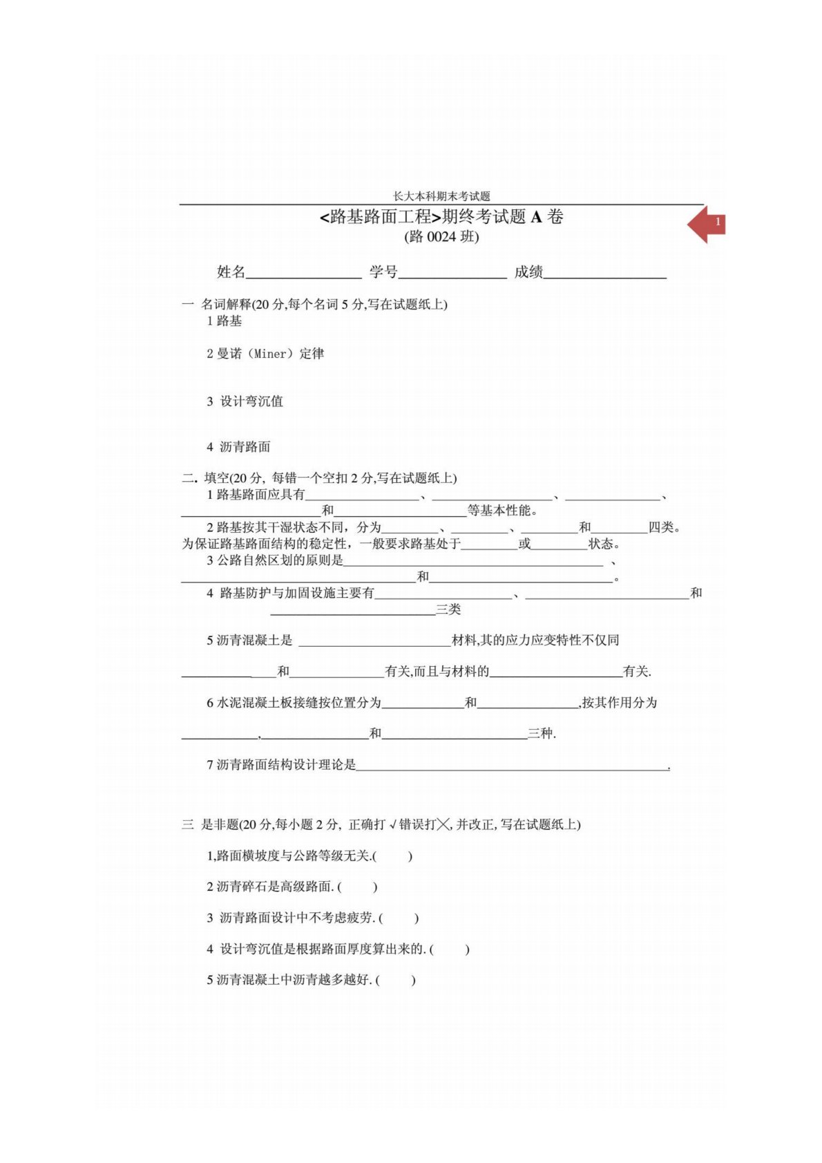 长安大学803道路工程试卷