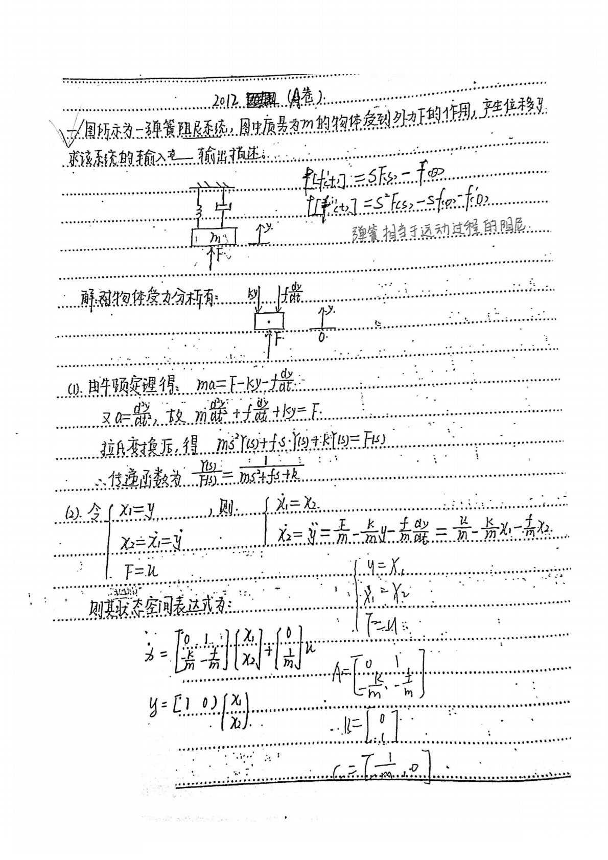 长安大学812自动控制理论2012年真题答案手写版