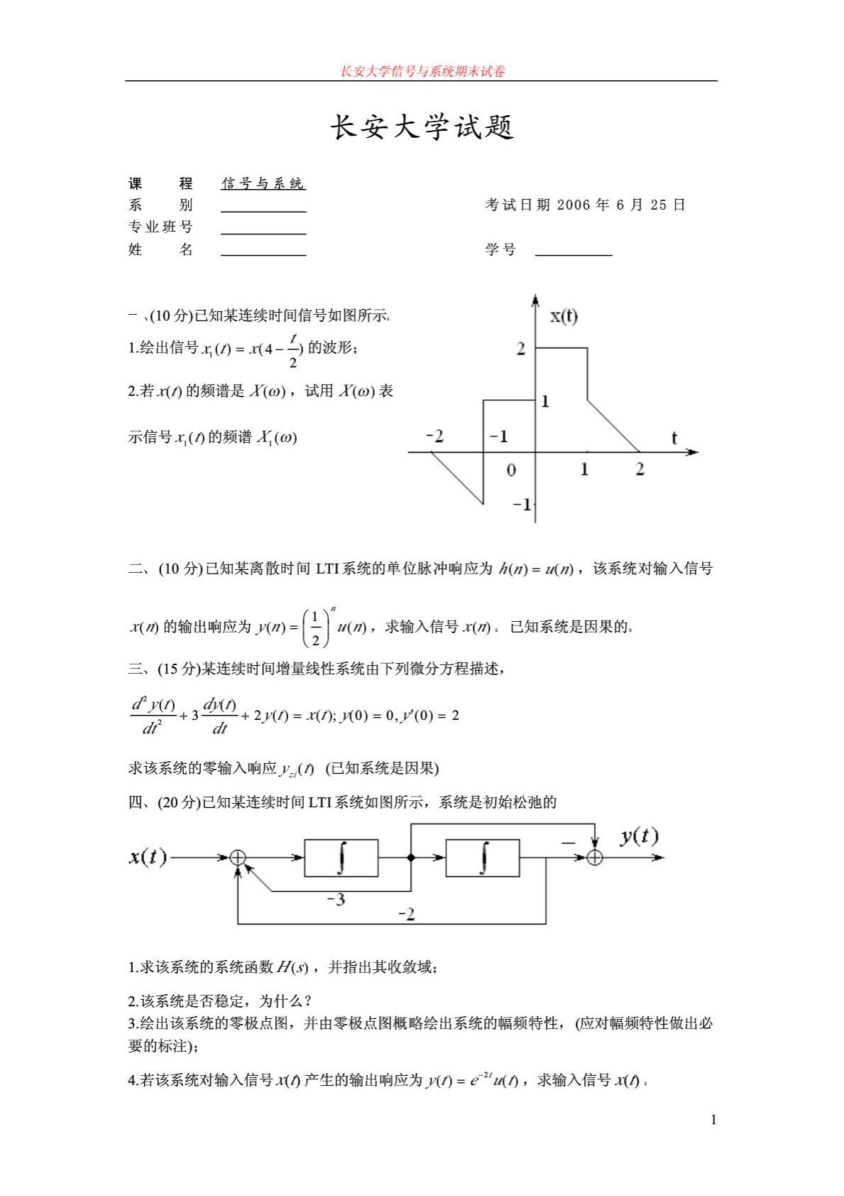 长安大学814信号系统期末试题