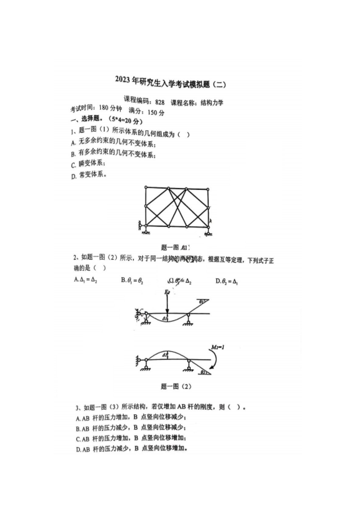 长安大学828结构力学模拟卷2