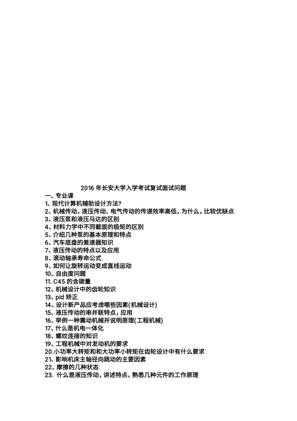 长安大学测试与传感器技术或液压传动2016年复试真题