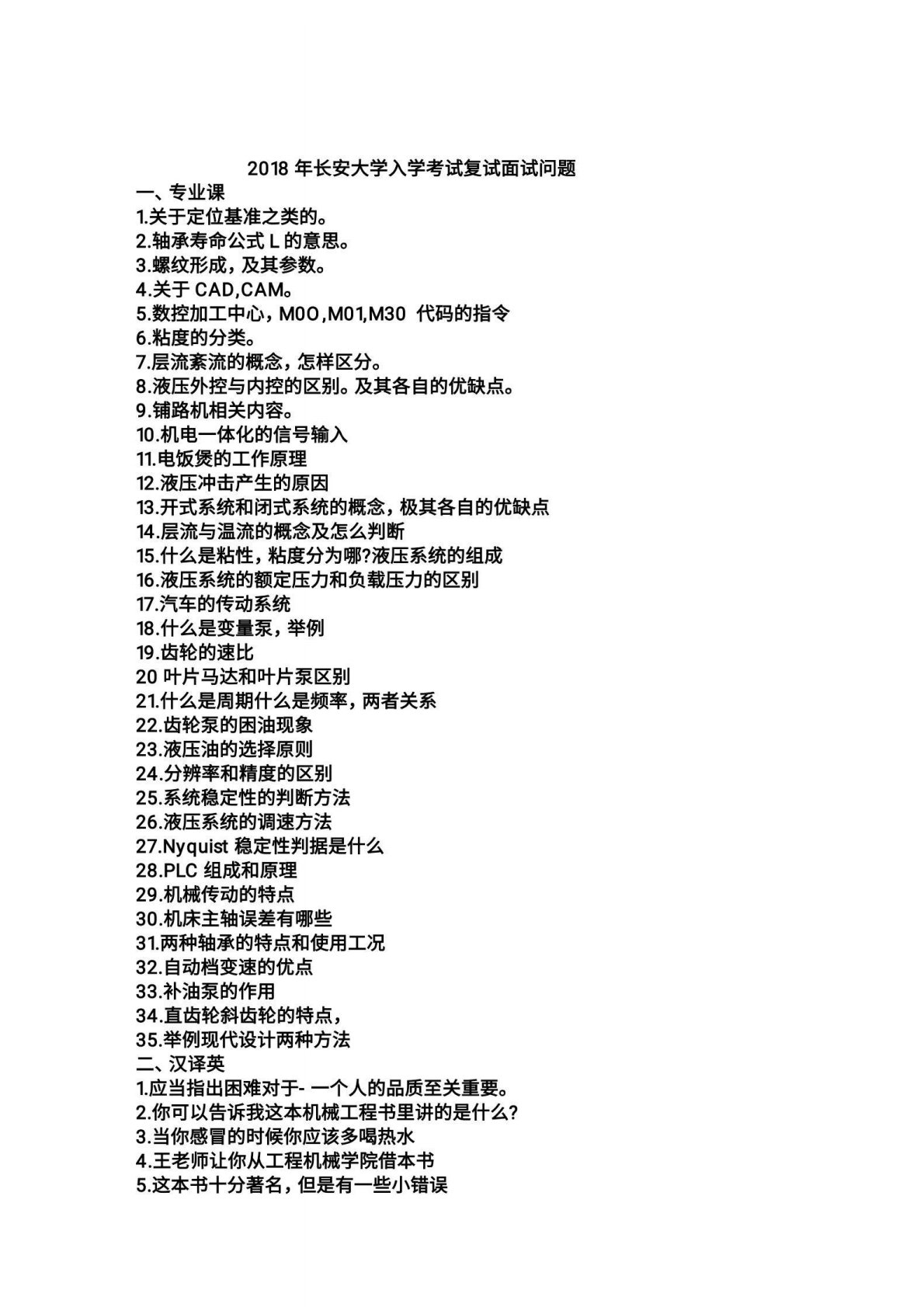 长安大学测试与传感器技术或液压传动2018年复试真题