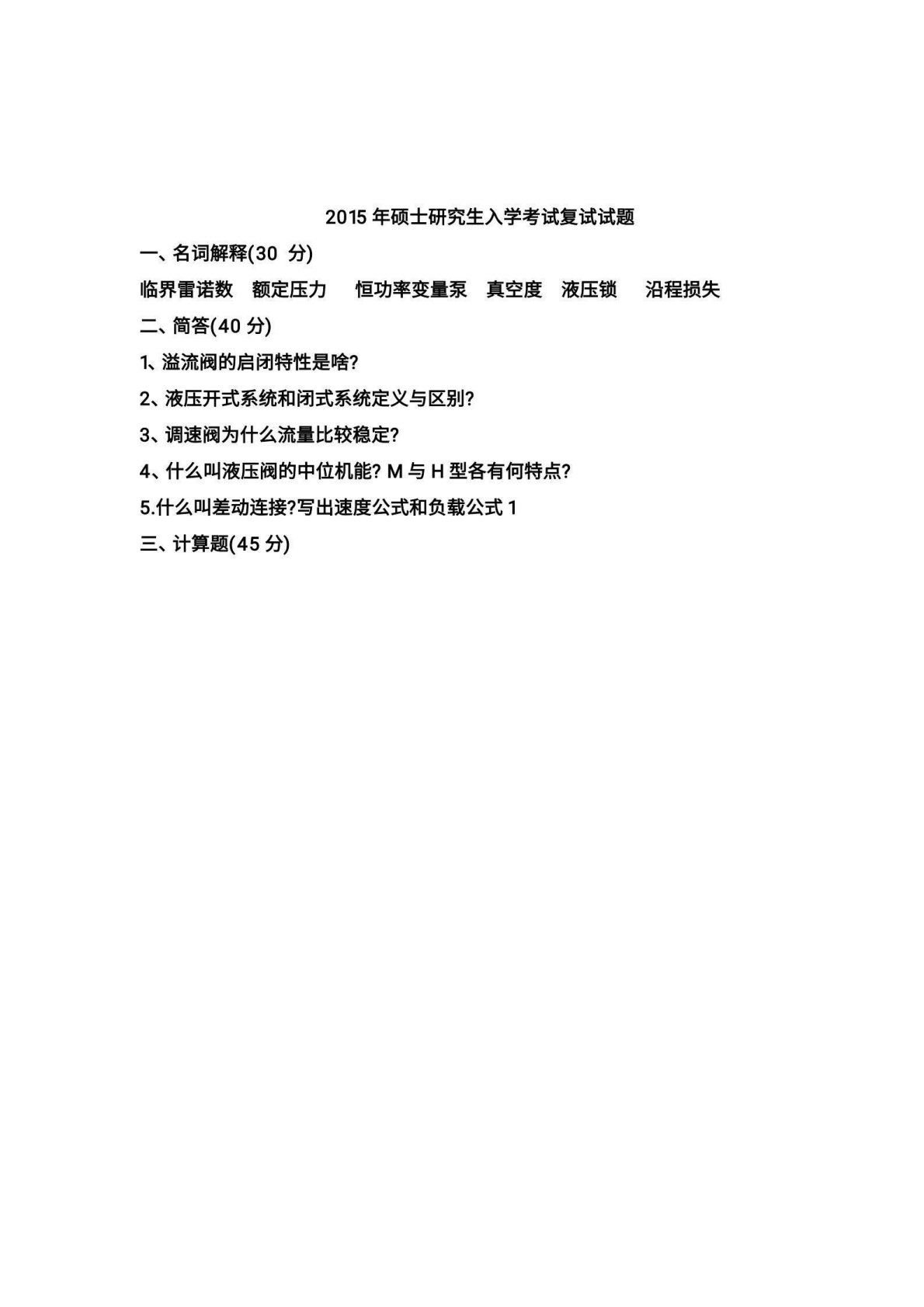 长安大学液压传动2015年复试考研真题