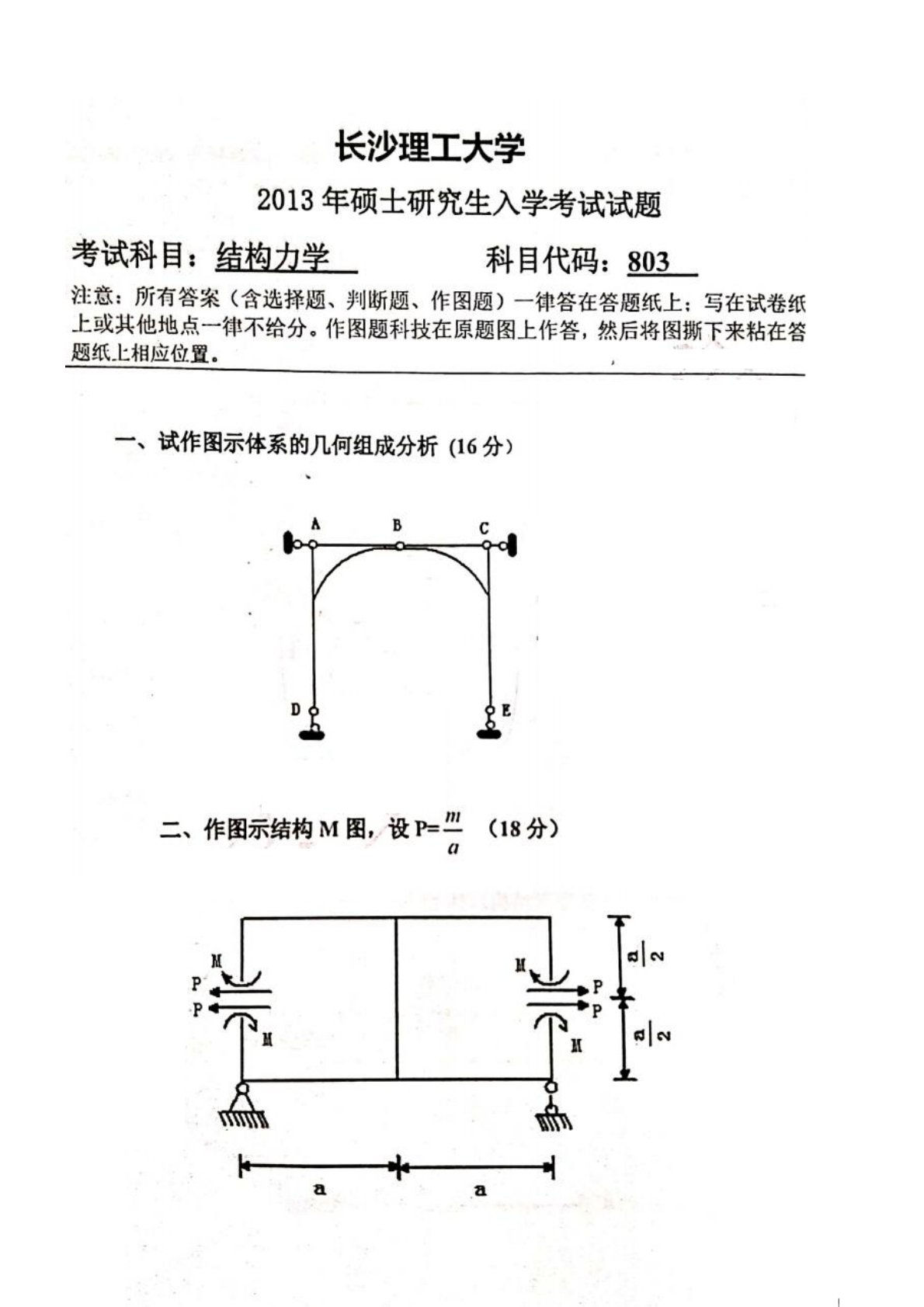 长沙理工大学803结构力学2013年真题