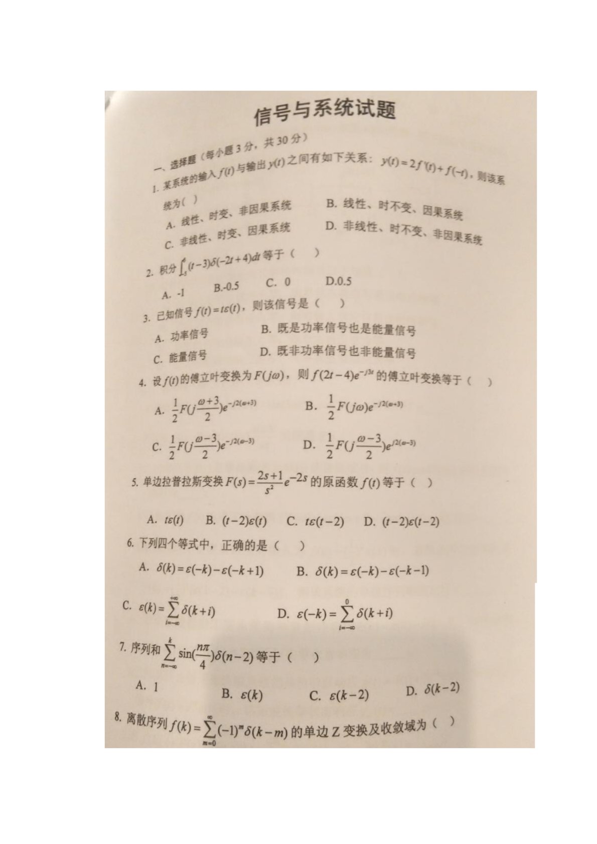 长安大学814信号与系统2016年试题