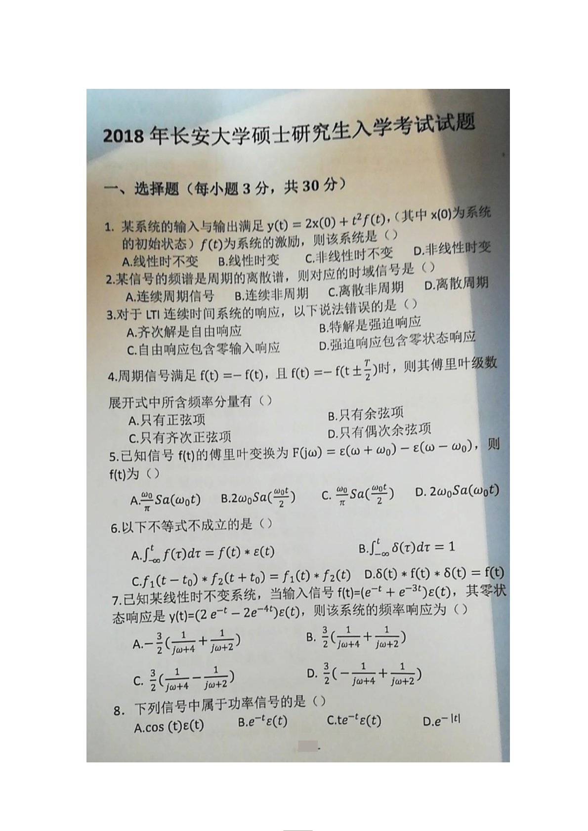长安大学814信号与系统2018年真题