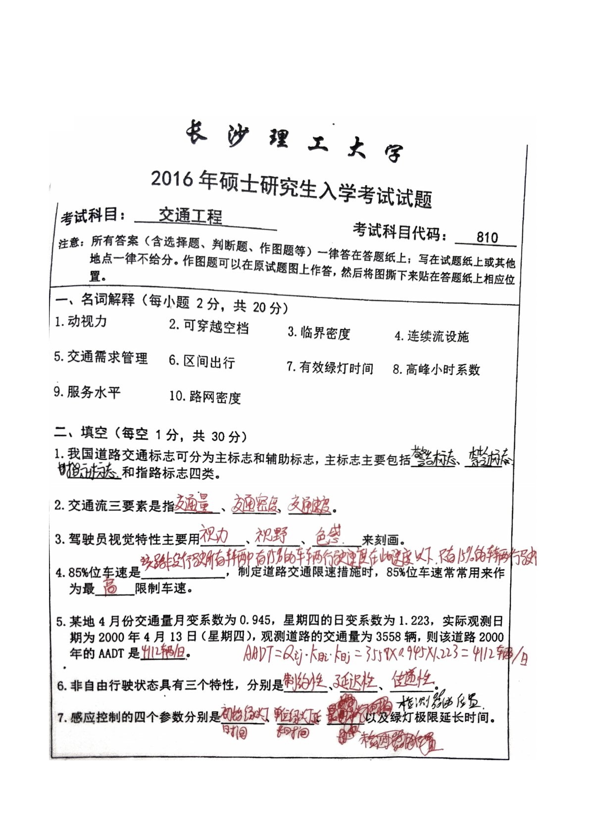 长沙理工大学810交通工程2016年真题答案