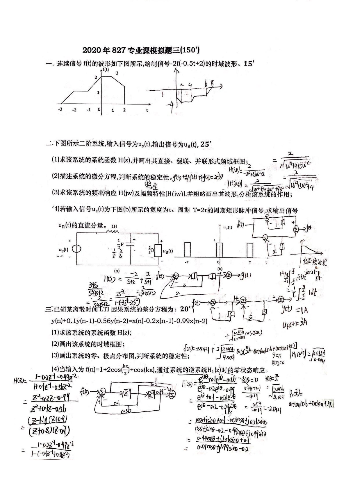 北京工业大学822信息与系统2021年真题答案VIP专享