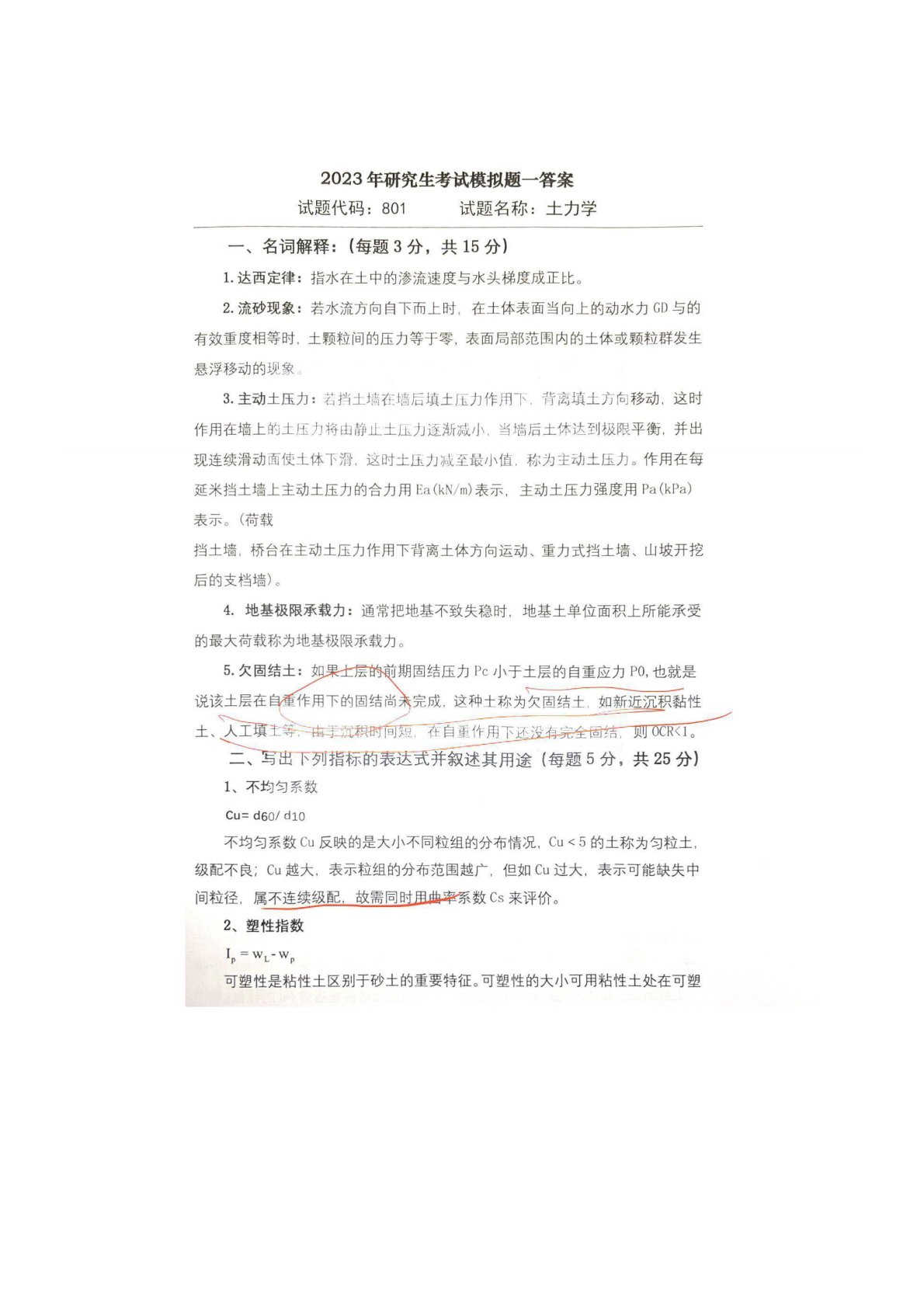 长安大学801土力学模拟题1答案