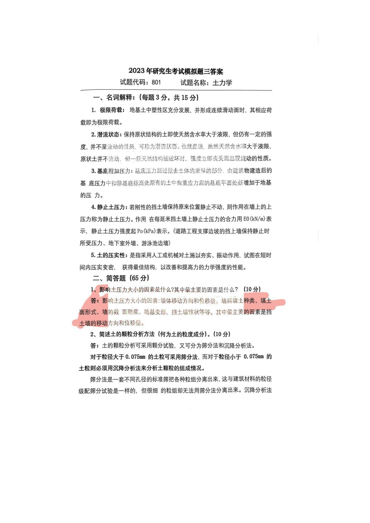 长安大学801土力学模拟题3答案