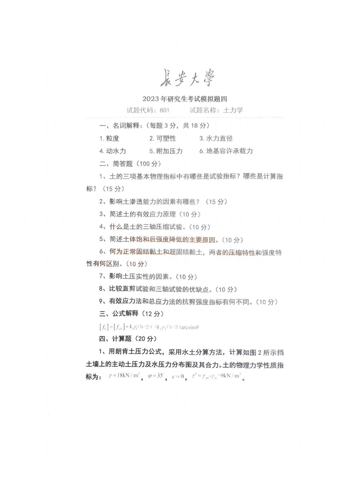 长安大学801土力学模拟题4