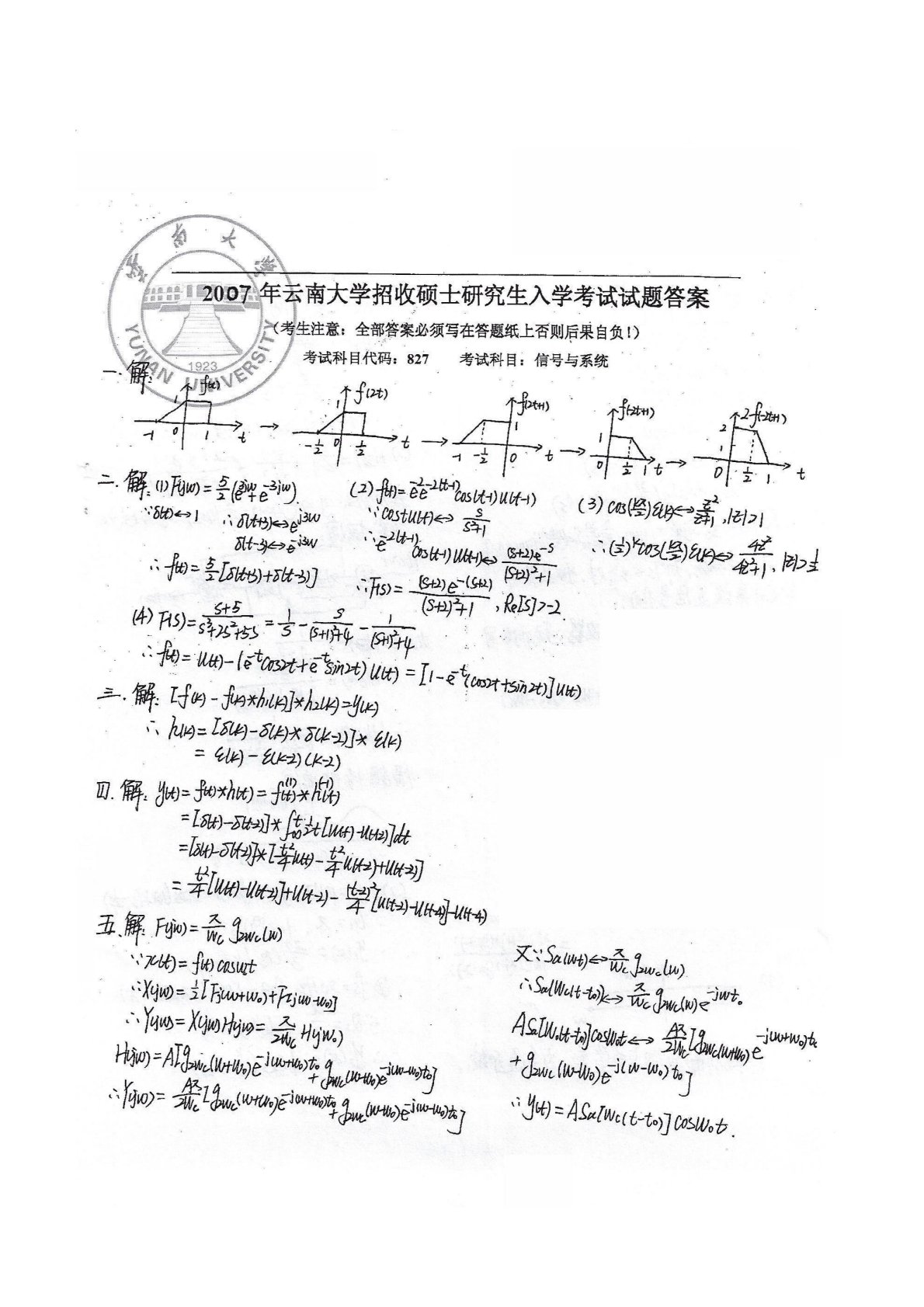 云南大学847专业基础综合2007年真题答案手写版