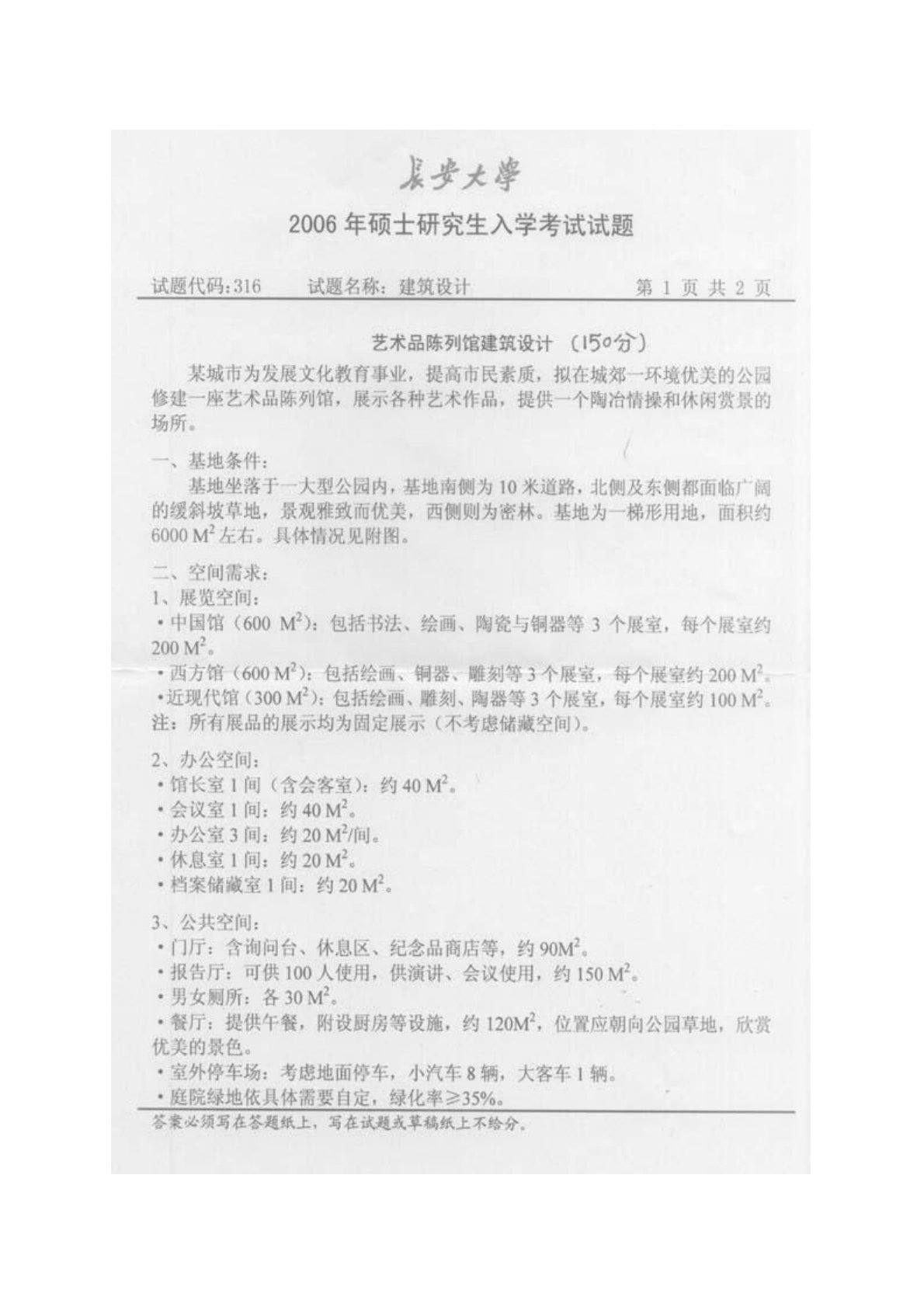 长安大学501建筑设计2006年真题