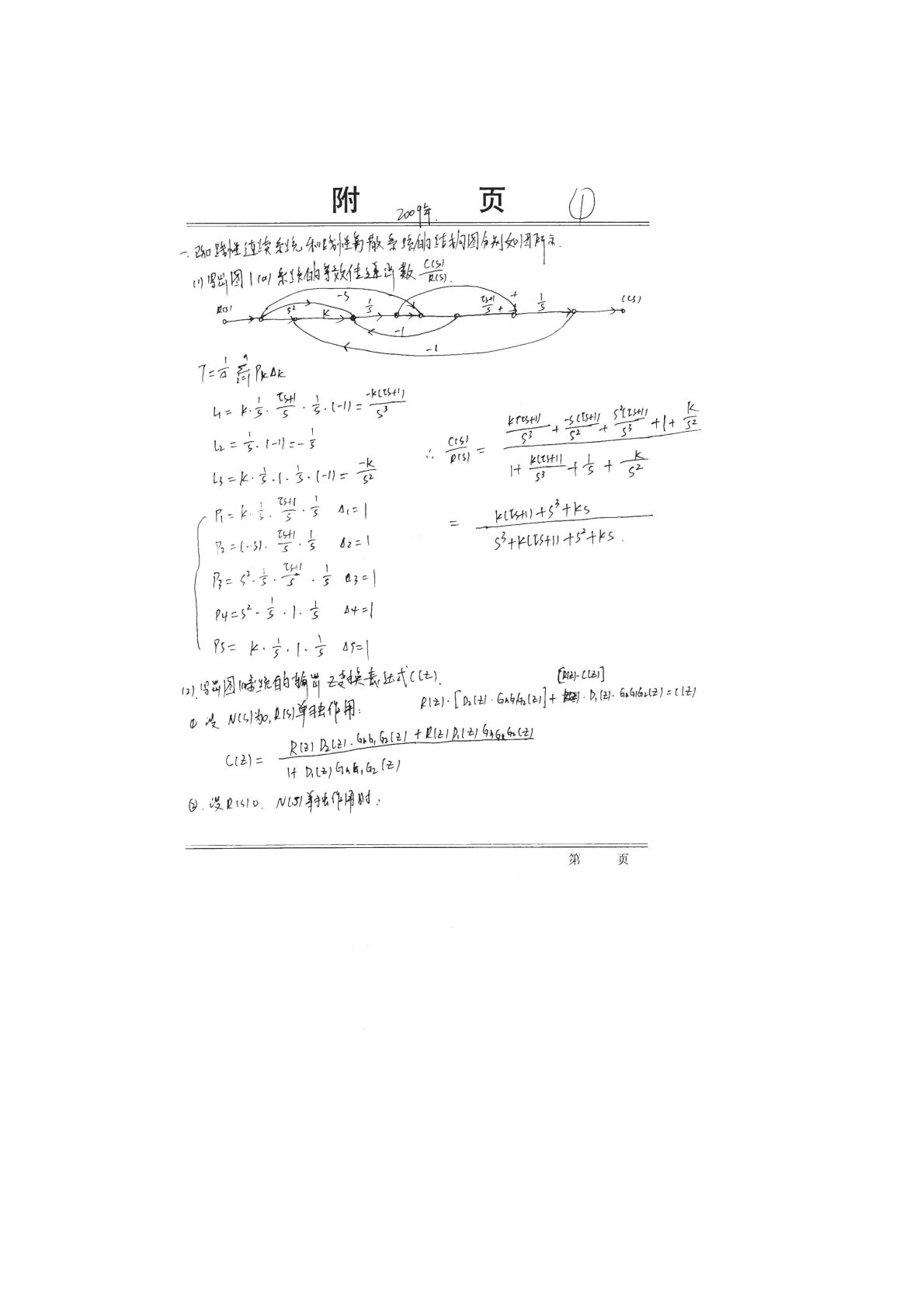 长安大学812自动控制理论2009年真题答案手写版