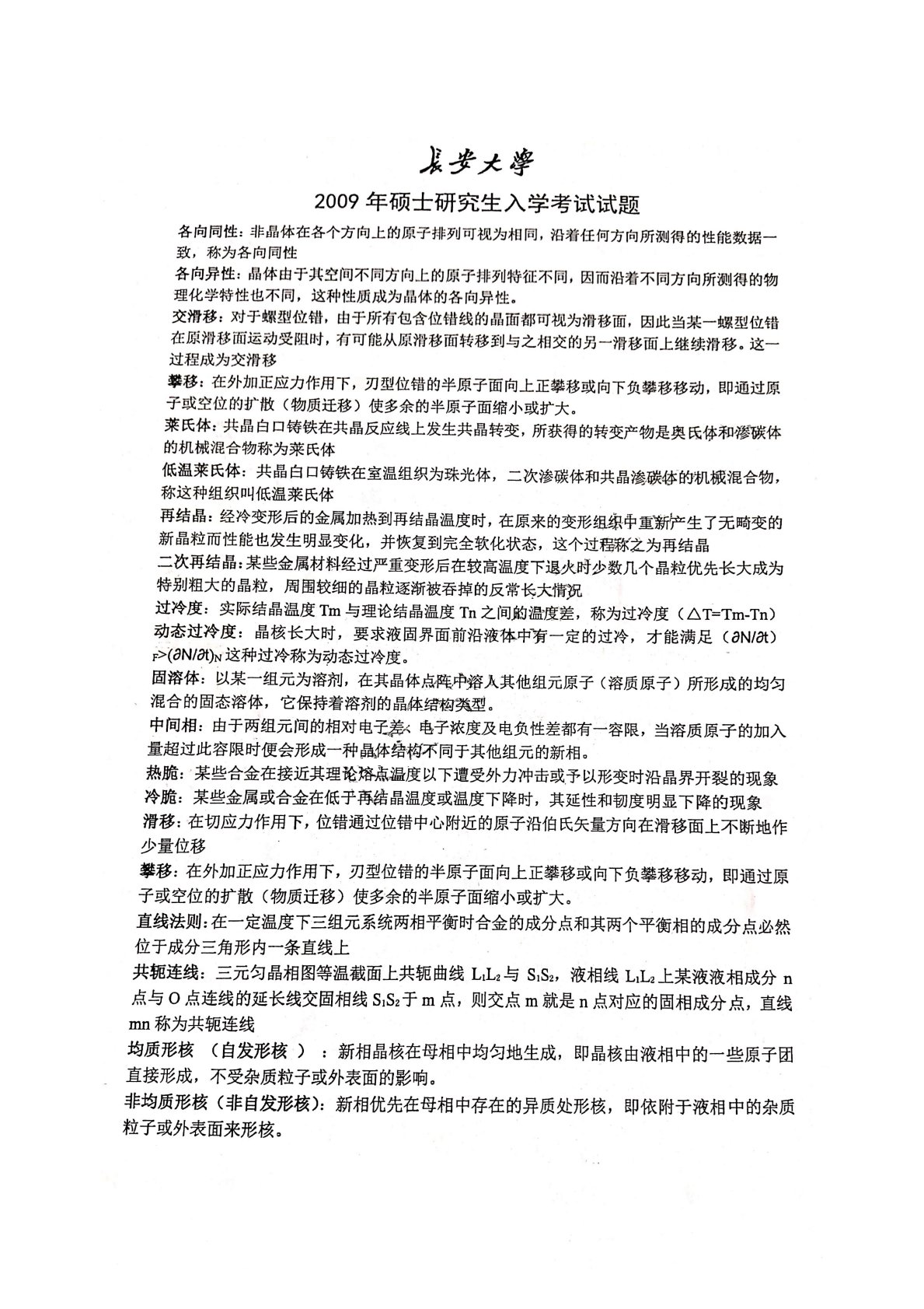 长安大学838材料科学基础2009年真题答案