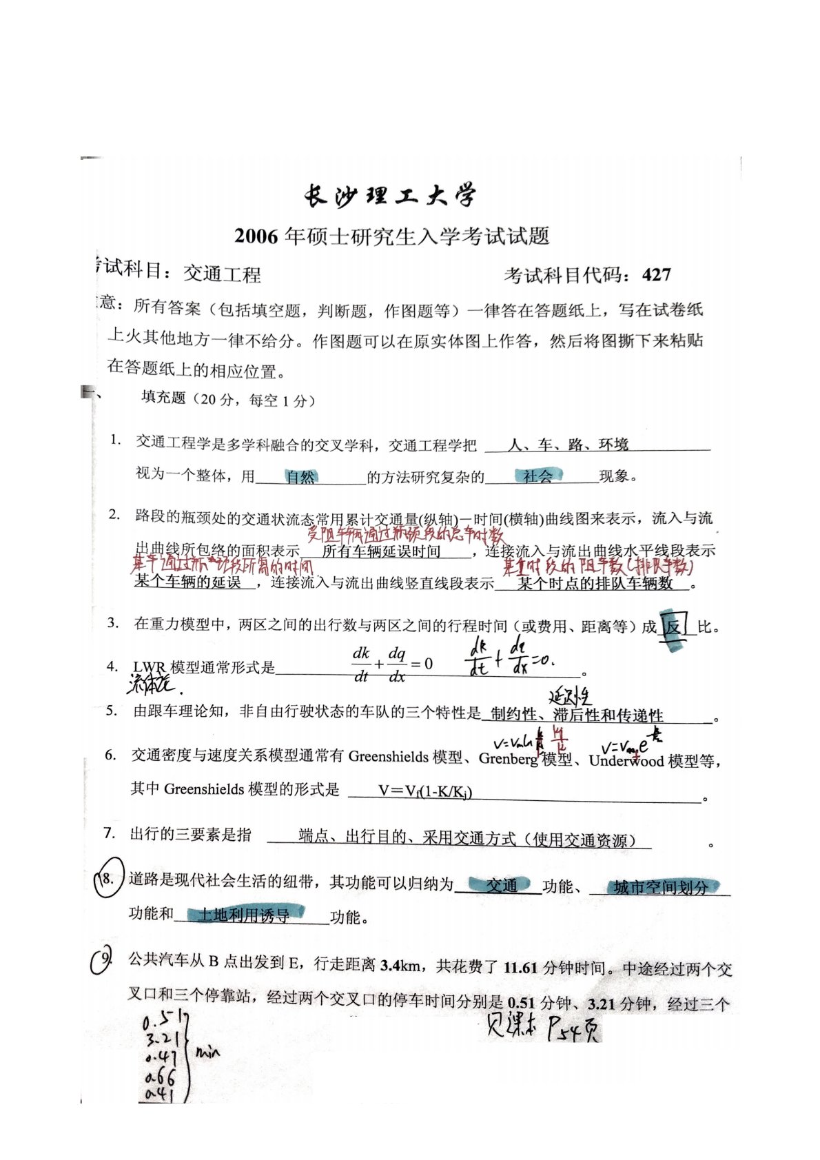 长沙理工大学810交通工程2006年真题答案