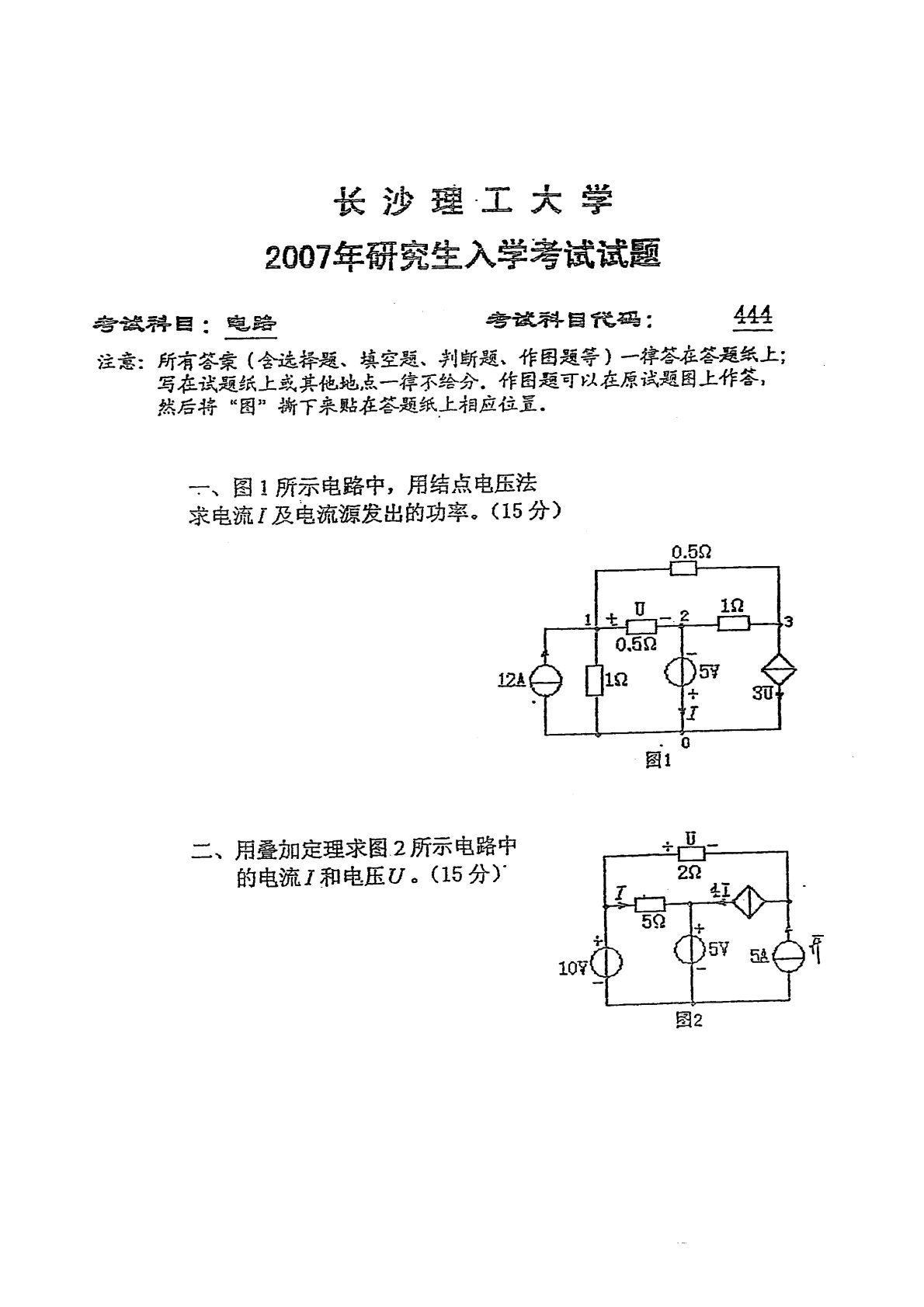 长沙理工大学821电路2007年真题