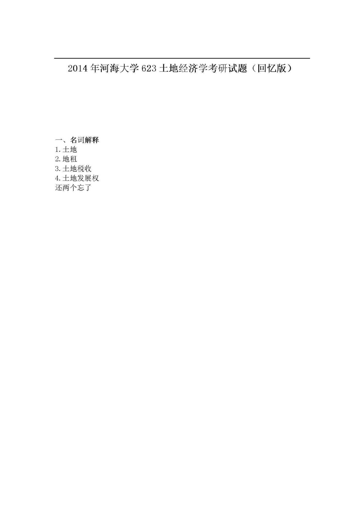 河海大学623土地经济学2014年真题回忆版