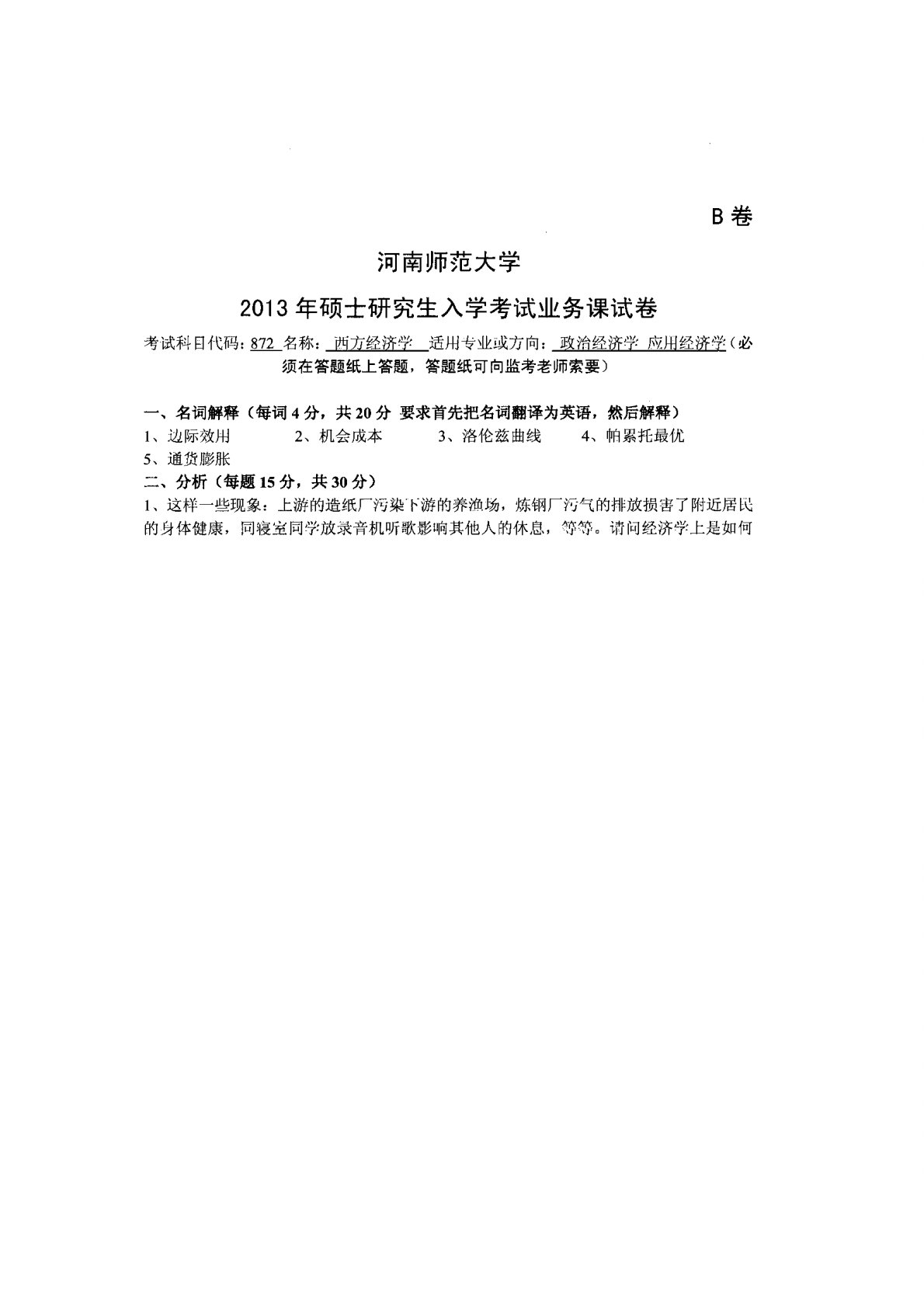 河南师范大学876西方经济学(宏观、微观)2013年真题