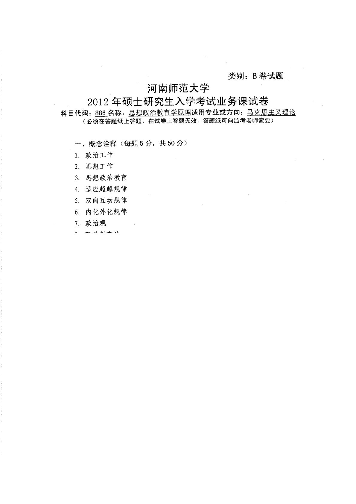 河南师范大学881思想政治教育学原理2012年真题