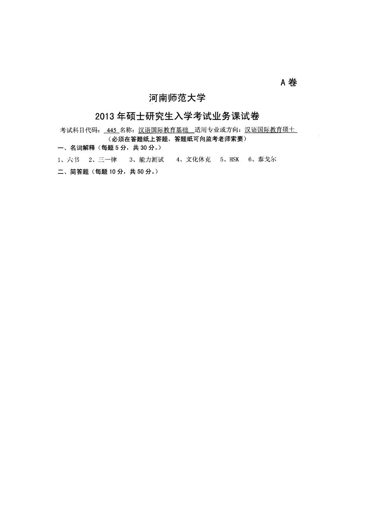 河南师范大学445汉语国际教育基础2013年真题