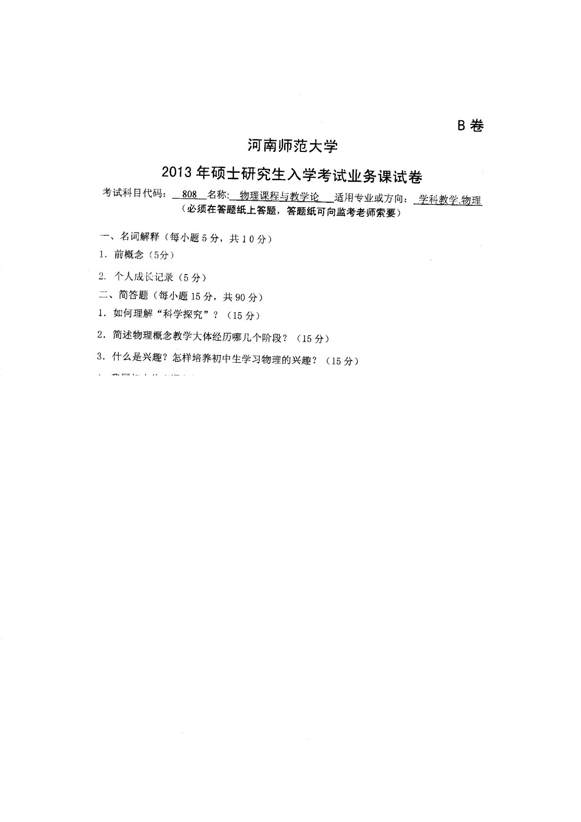 河南师范大学810物理课程与教学论2013年真题