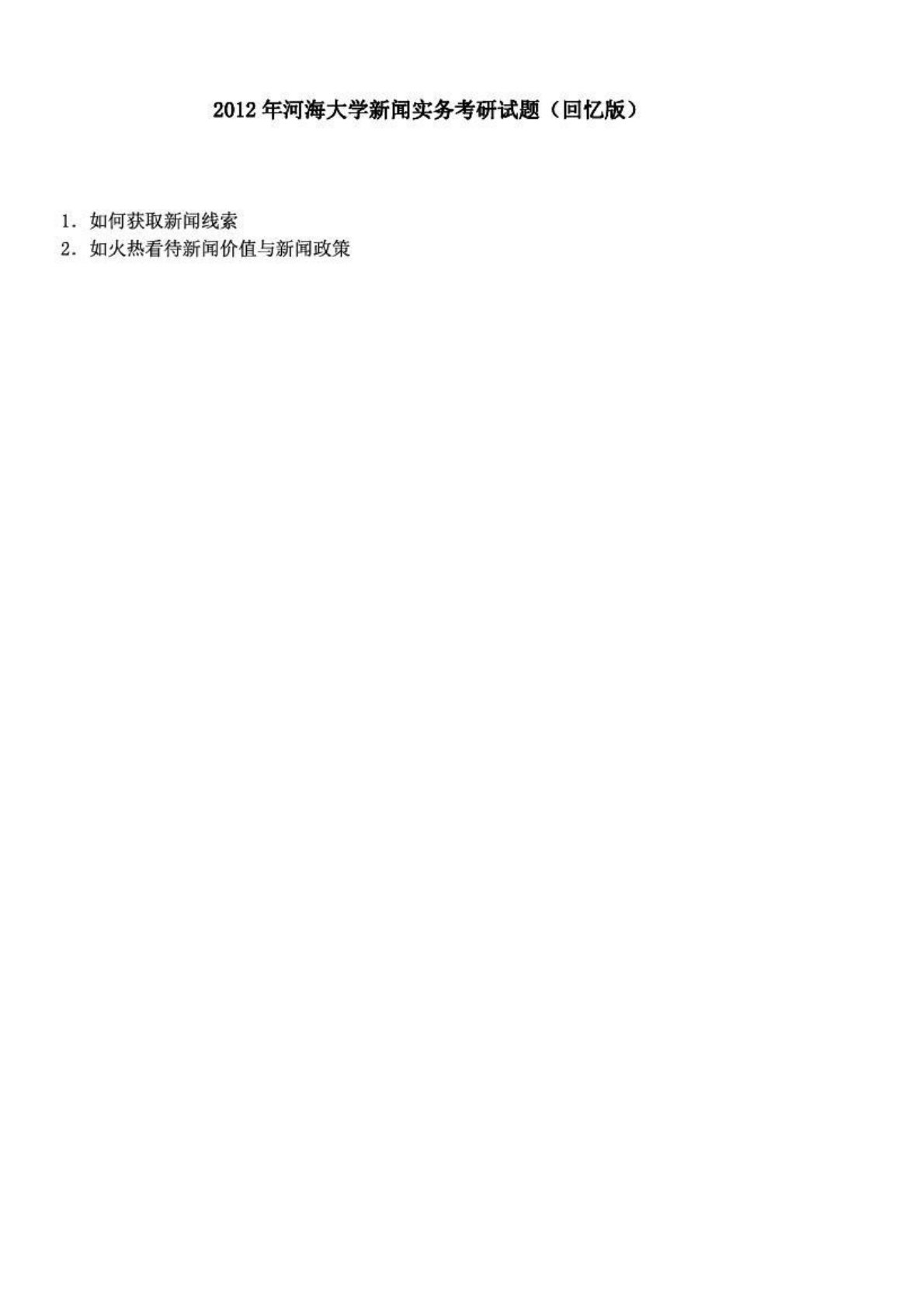 河海大学828新闻传播实务2012年真题回忆版
