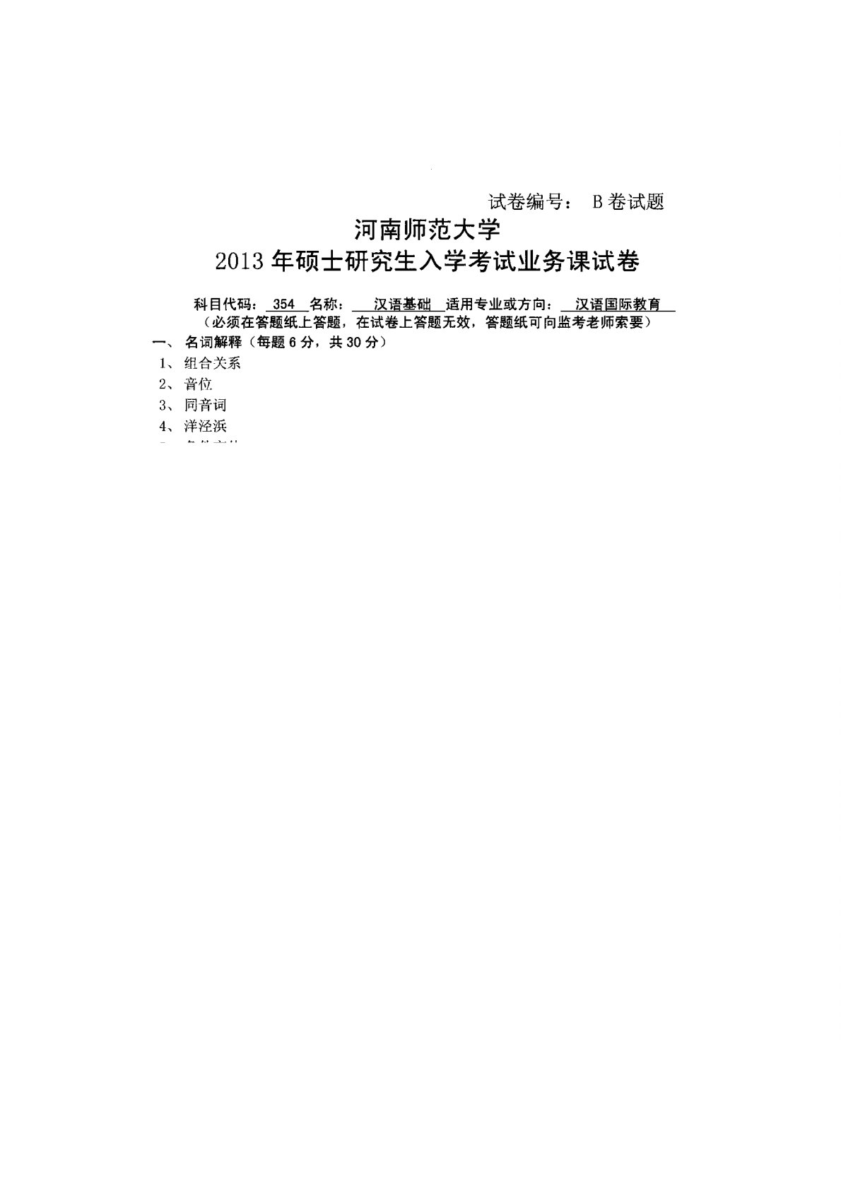 河南师范大学354汉语基础2013年真题