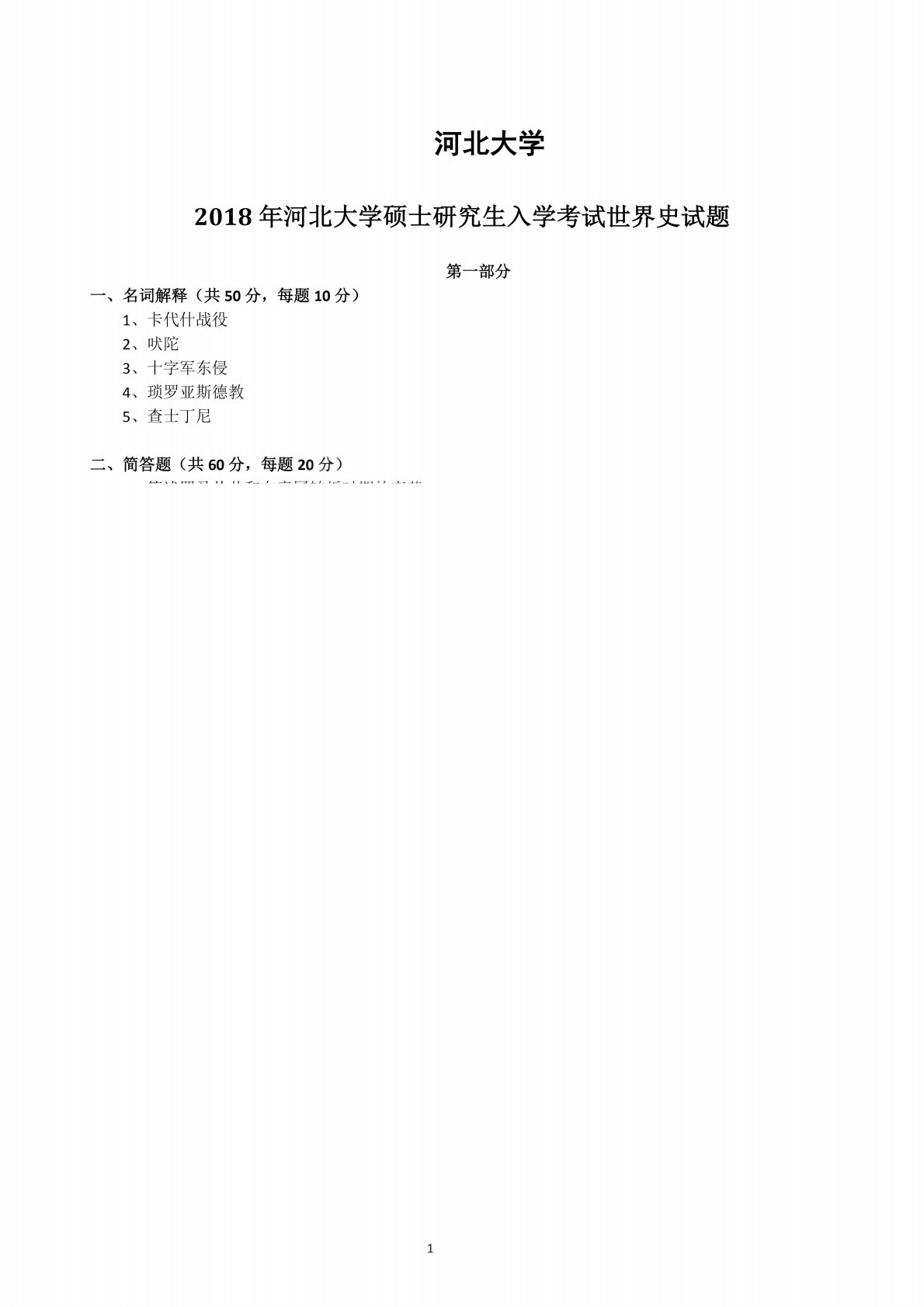 河北大学313历史学专业基础2018年世界史考研真题
