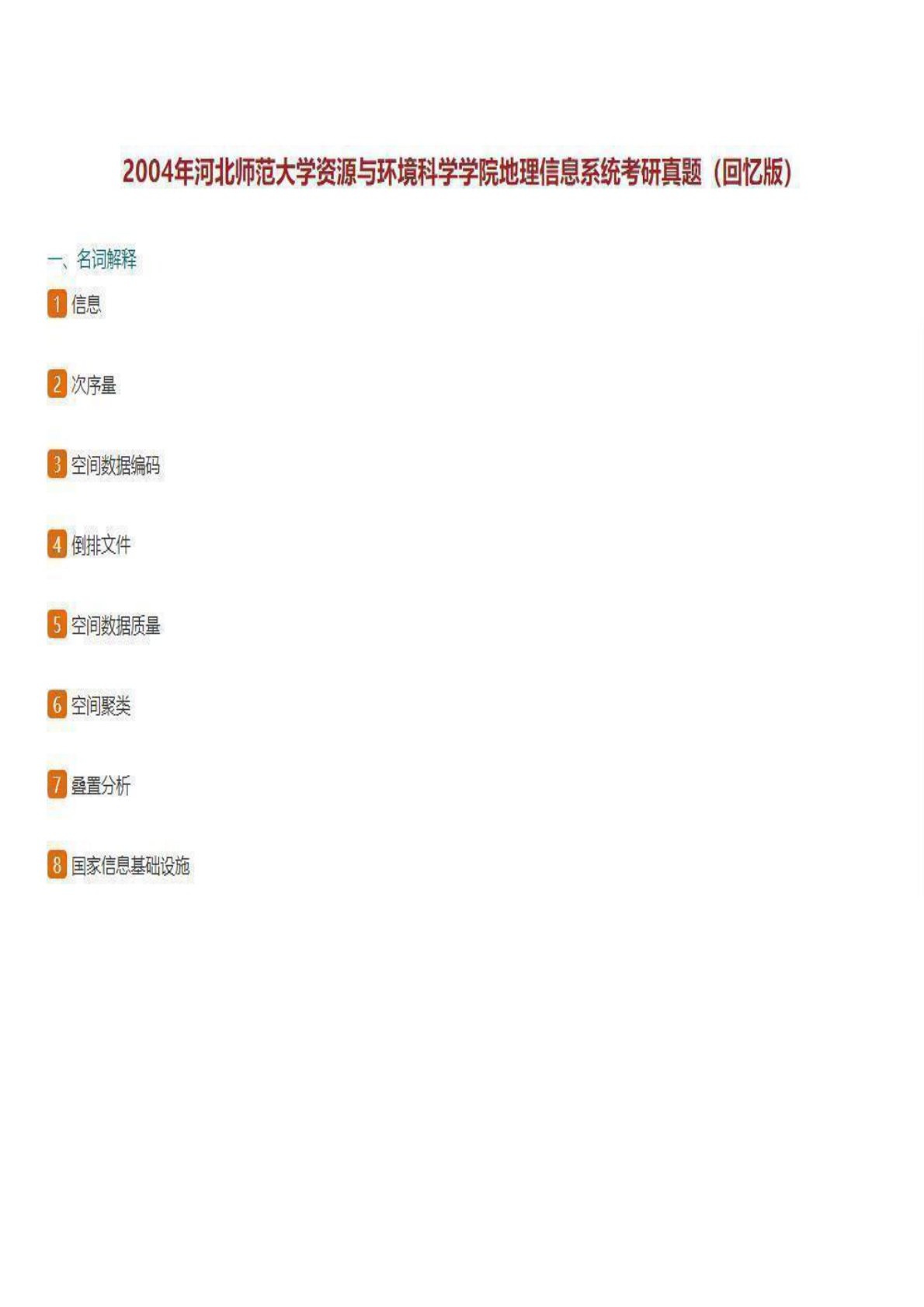 河北师范大学729地理信息科学2004年考试真题(回忆版)