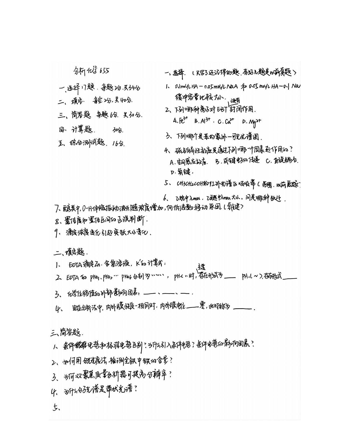 华东师范大学805普通化学原理二2020年真题(分析化学)(回忆版)(1)