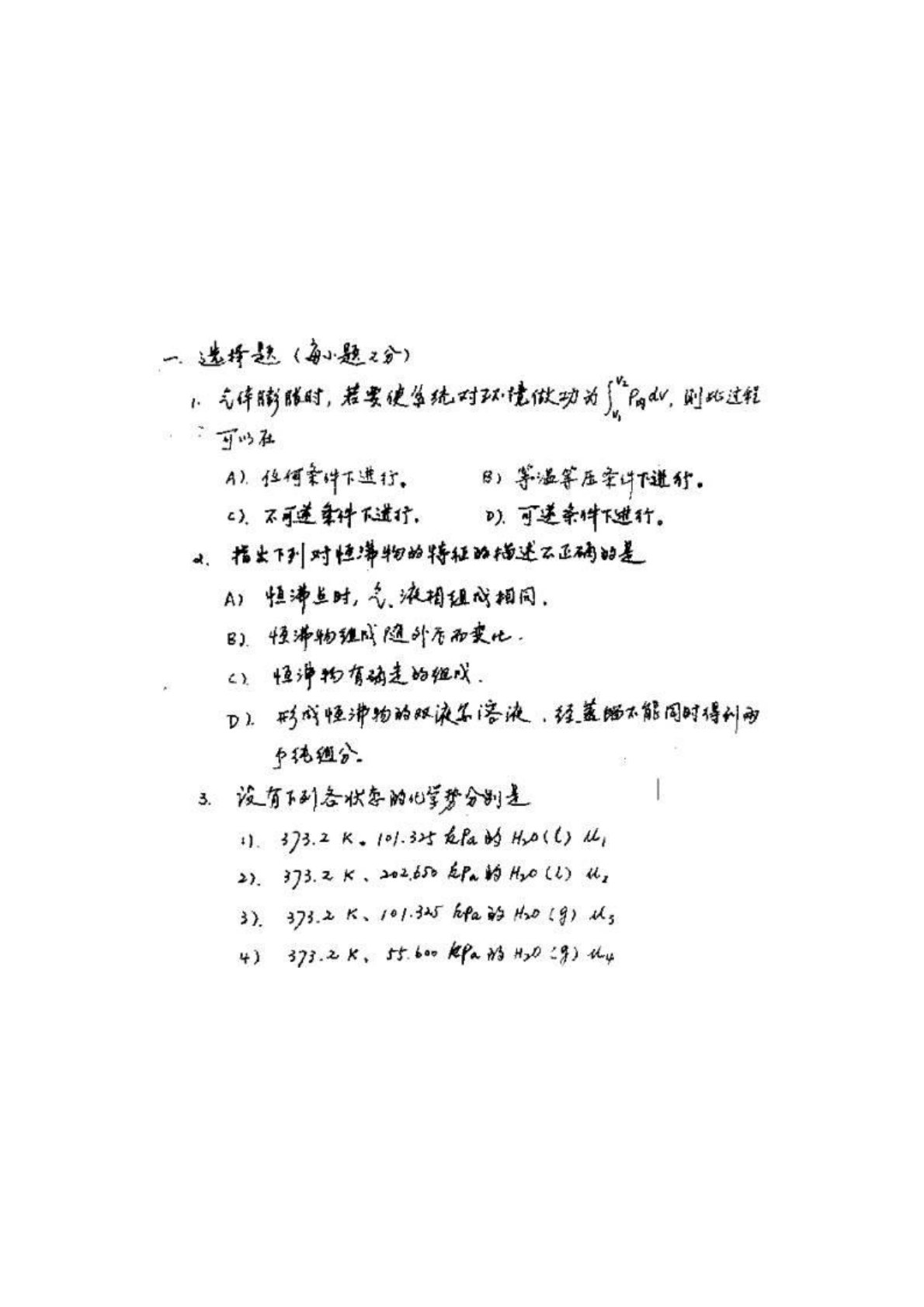 华东师范大学640普通化学原理一2018年真题(物理化学)(手写版)