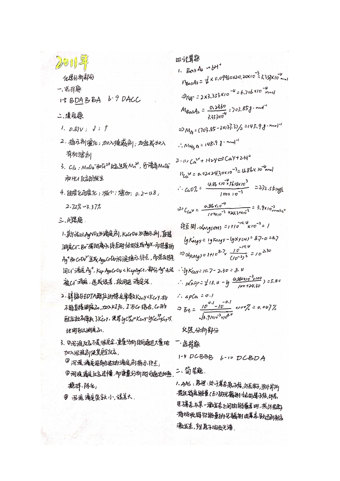 华东师范大学805普通化学原理二2011年真题答案(分析化学)