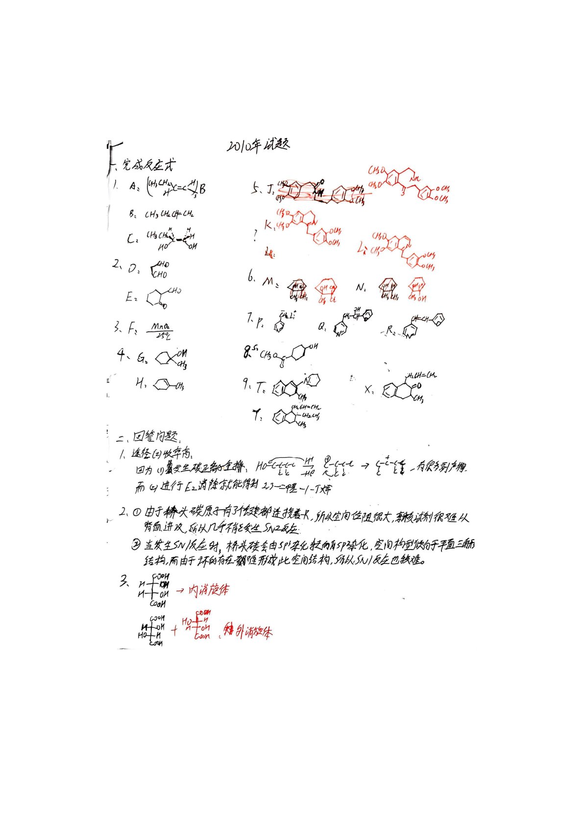 华东师范大学640普通化学原理一2010年真题答案(有机化学)