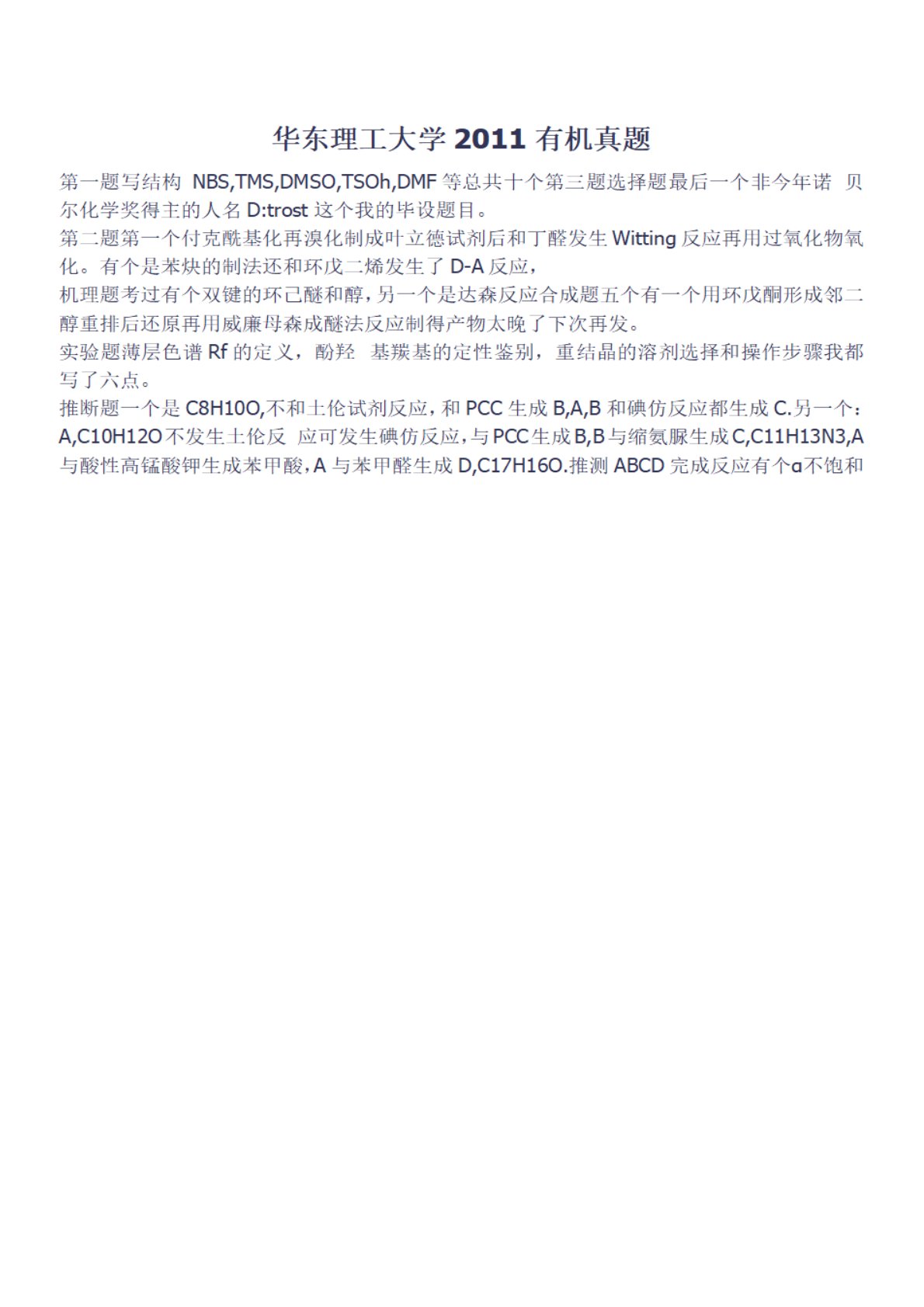 华东理工大学803有机化学2011年真题