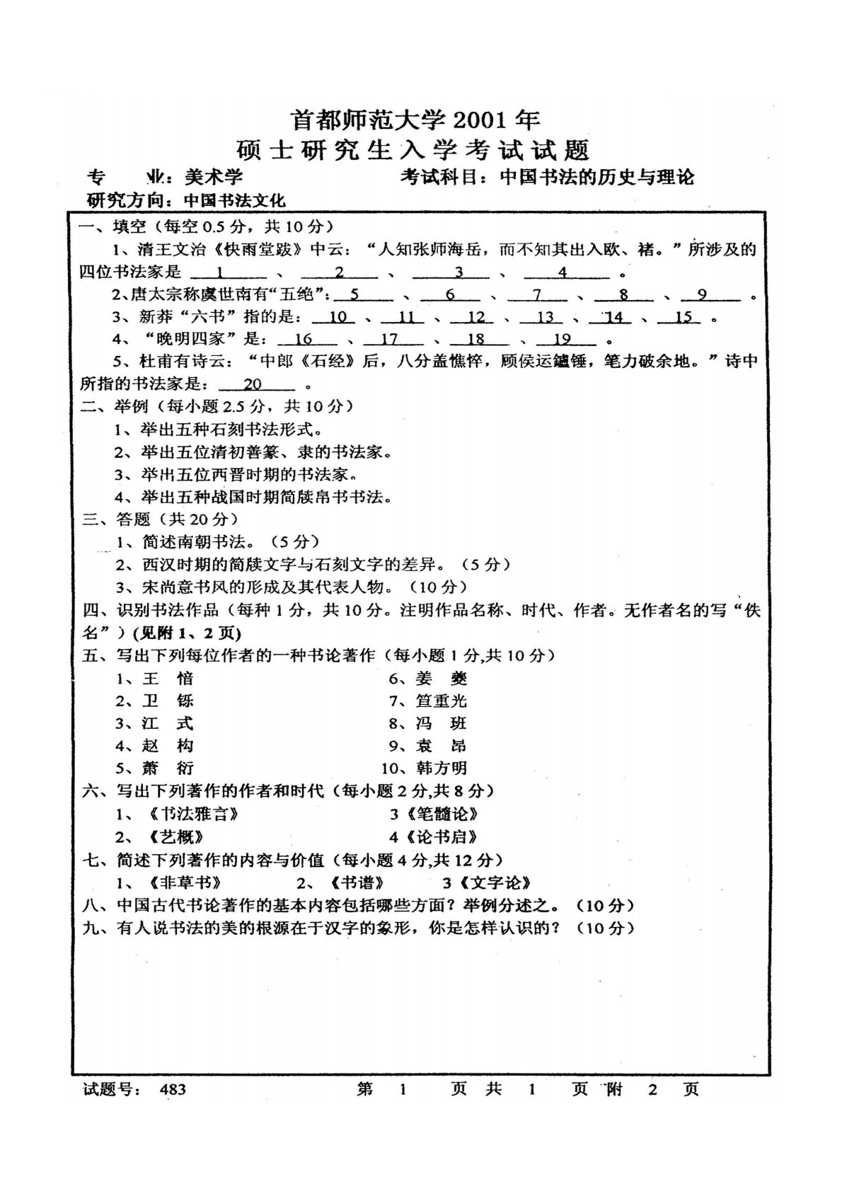 首都师范大学841中国书法的历史和理论2001年真题