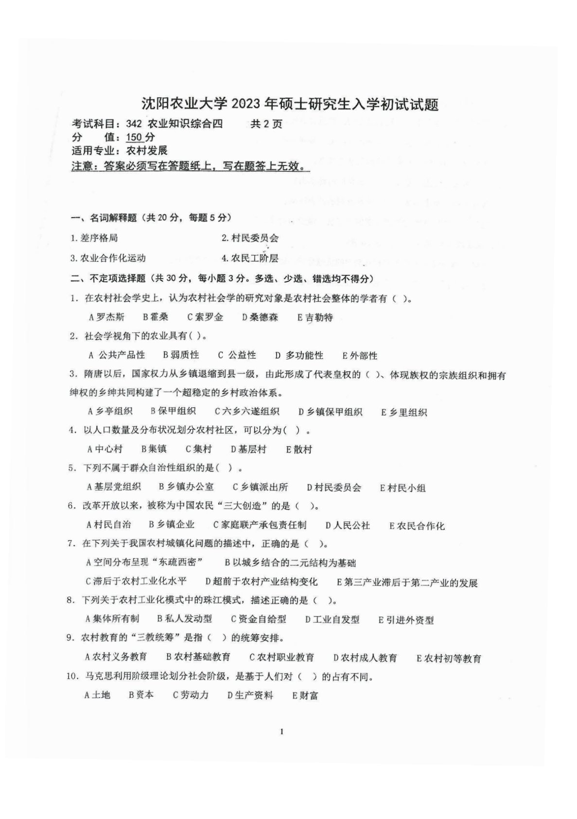 沈阳农业大学342农业知识综合四2023年真题1