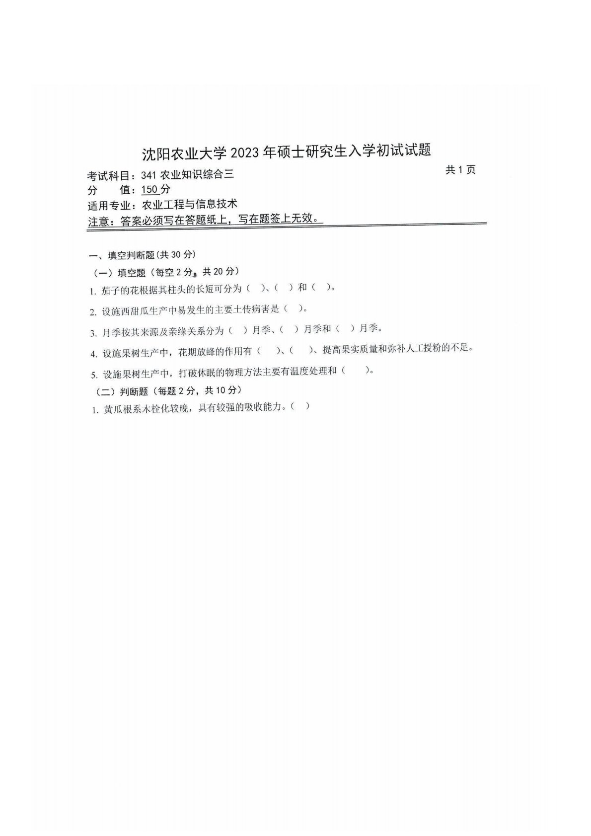 沈阳农业大学341农业知识综合三2023年真题