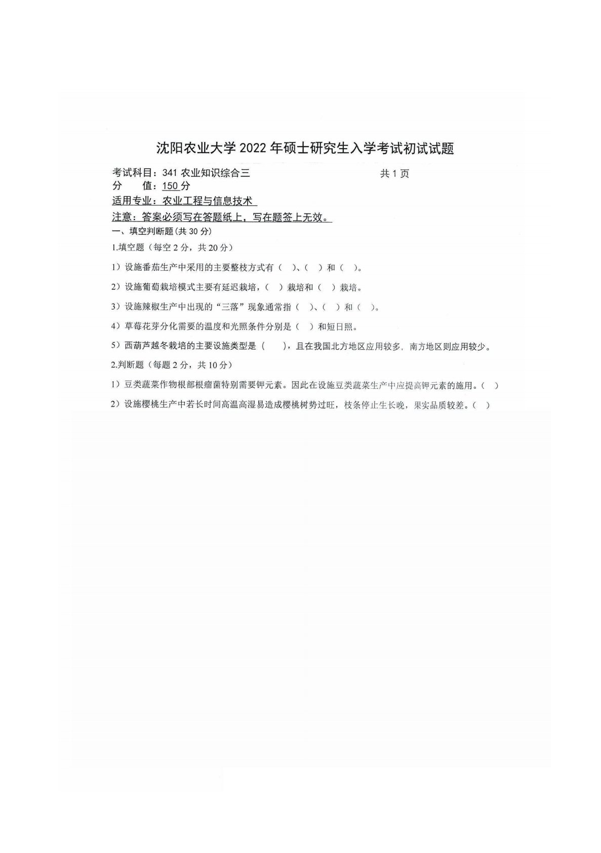 沈阳农业大学341农业知识综合三2022年真题