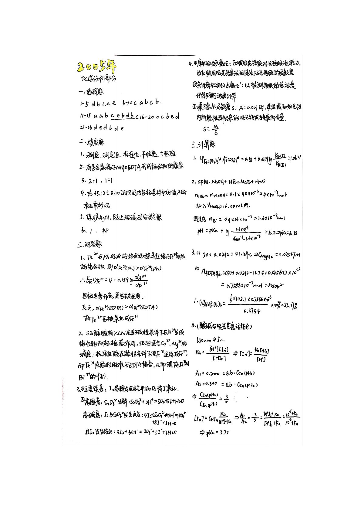 华东师范大学805普通化学原理二2005年真题答案(分析化学)