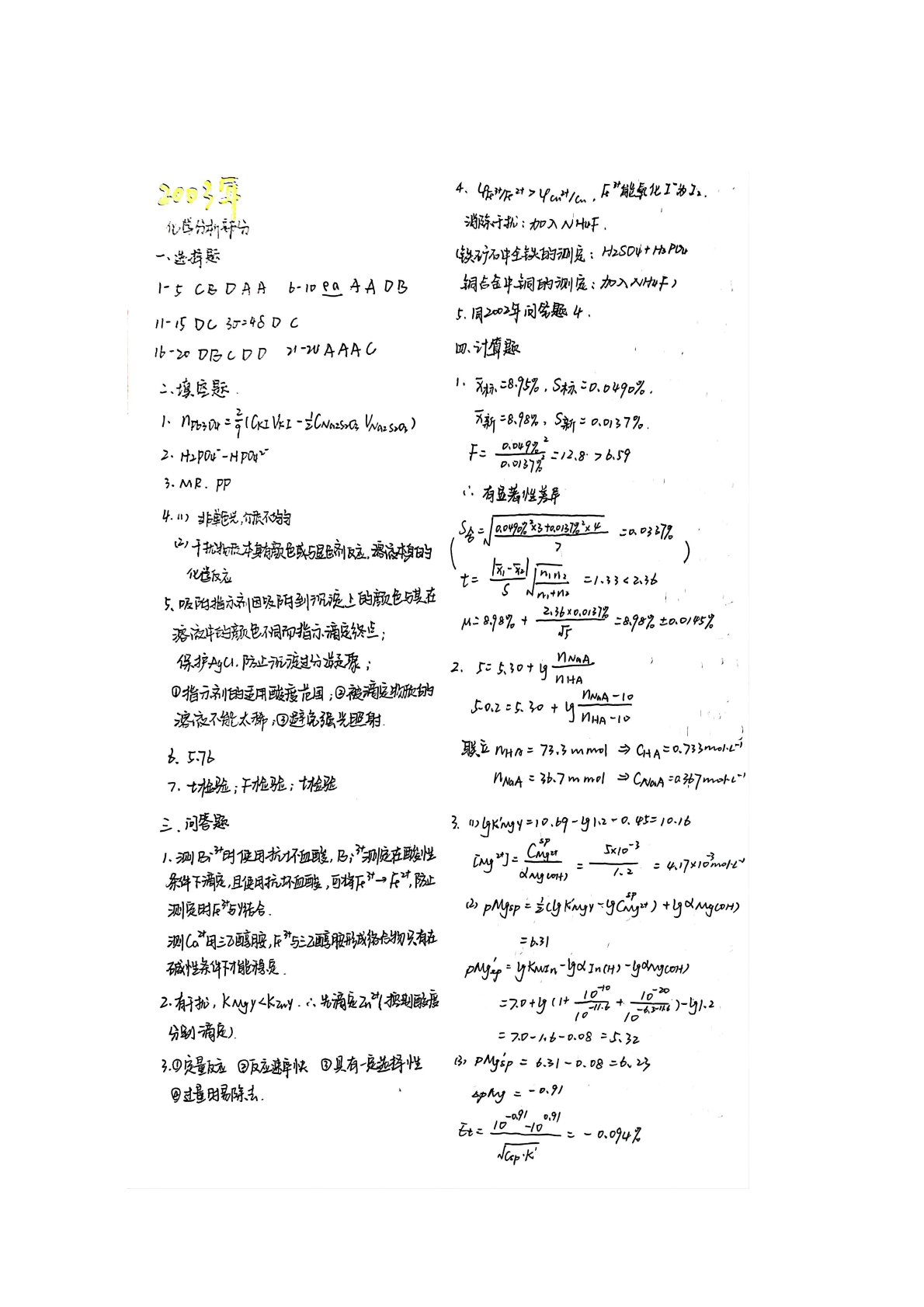 华东师范大学805普通化学原理二2003年真题答案(分析化学)