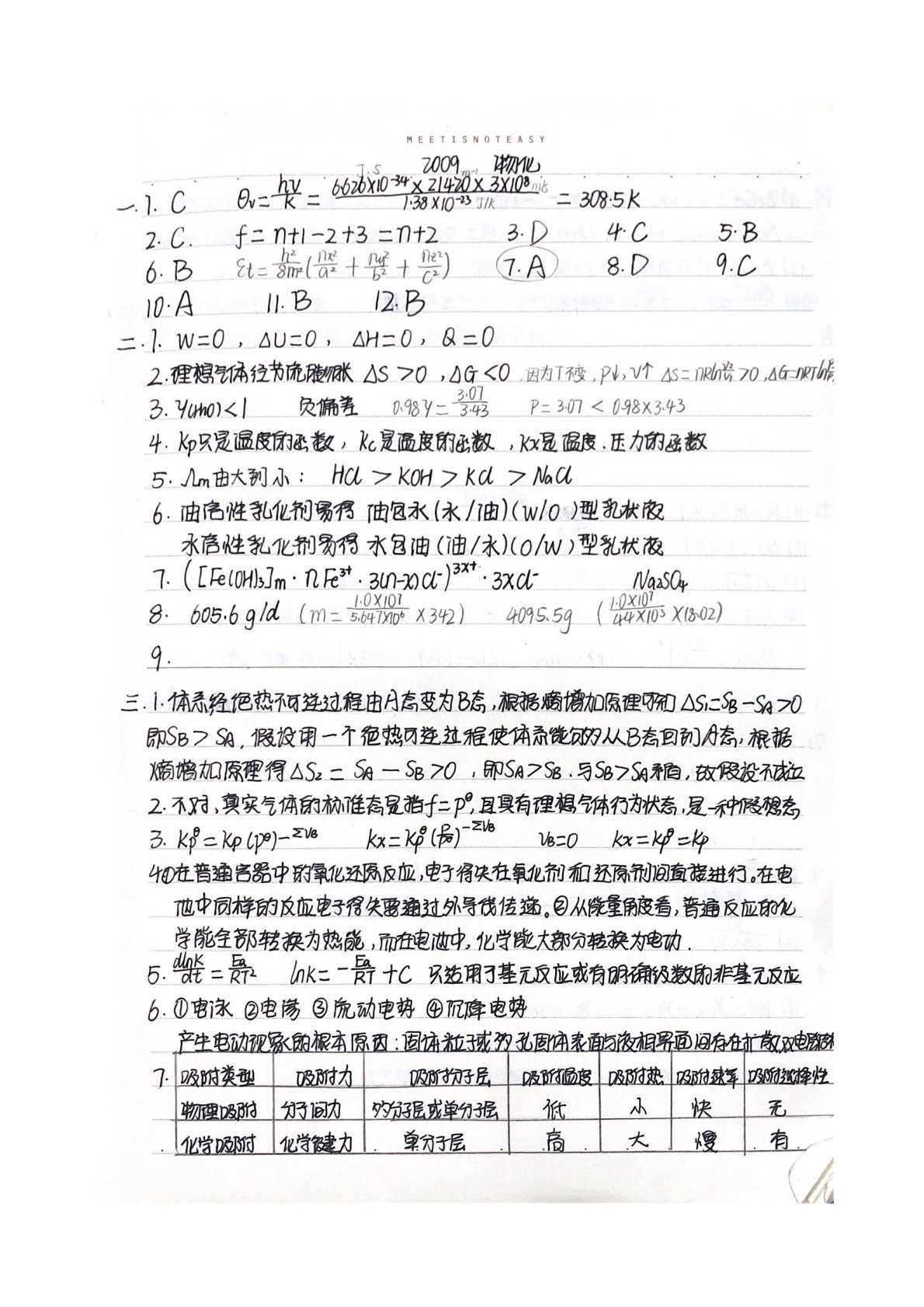 华东师范大学640普通化学原理一2009年真题答案(物理化学)(手写版)