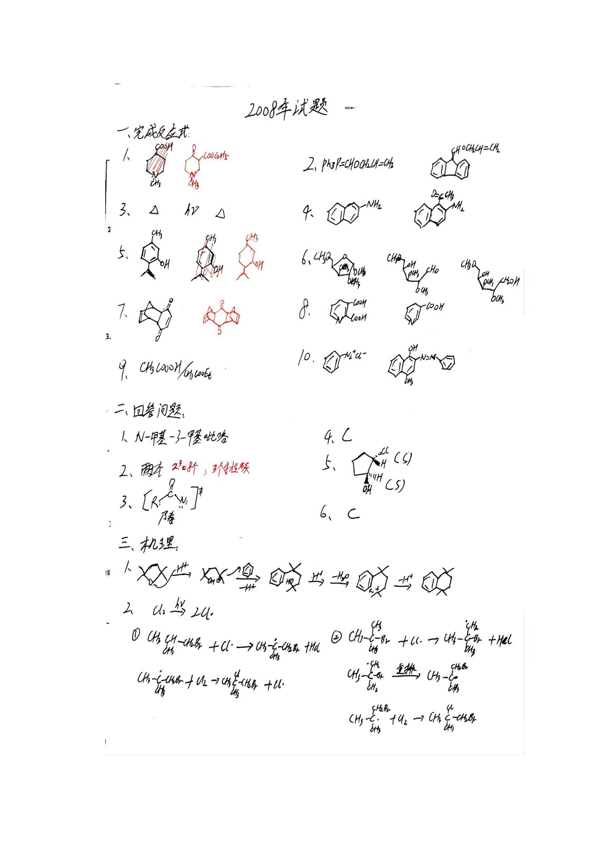 华东师范大学640普通化学原理一2008年真题答案(有机化学)